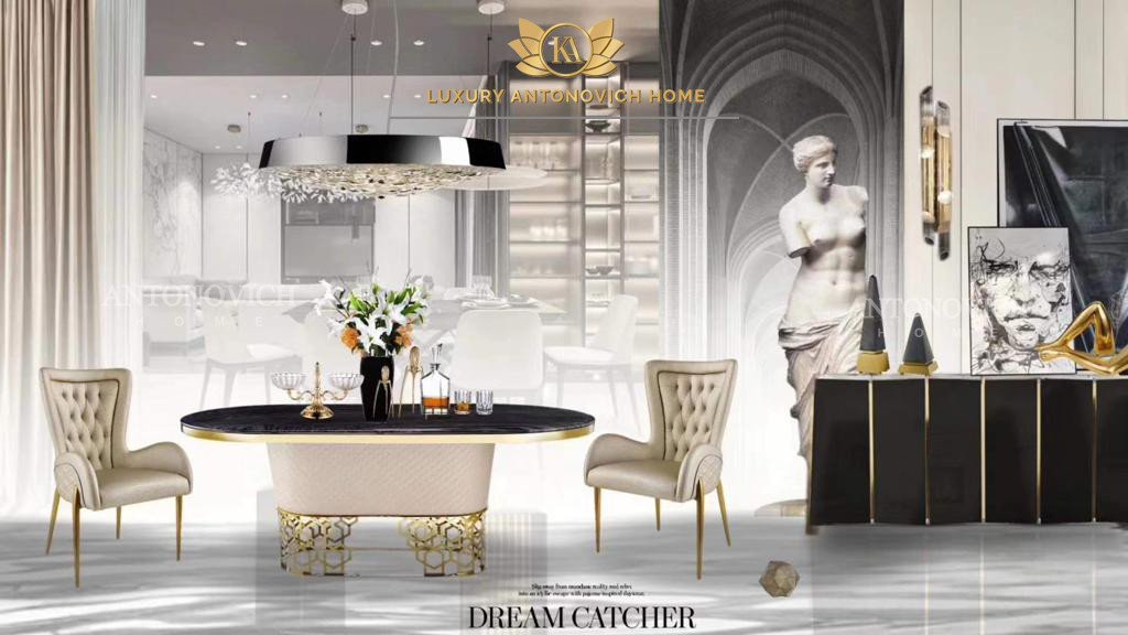 تزيين منزلك عملية تقود إلى خلق داخلية فريدة بسمات وحلول غير تقليدية. إذا تبحث عن الأصالة وتجسيد الإبداع لمنزلك أو مكتبك أو الاستوديو أو شقتك، فكل ما تحتاجه هو شراء أثاث مصمم فاخر. تقدم شركة أنطونوفيتش ديزاين (Antonovich Design) علامتها الخاصة من الأثاث المصمم — KA Furniture. الأثاث المصمم المعروض في صالة عرض Luxury Antonovich Home سيكون زينة راقية لأي داخلية ويساعدك على التعبير عن فرديتك؛ ولتنسيق المساحات المختلفة، اطلع على غرفة معيشة رائعة.