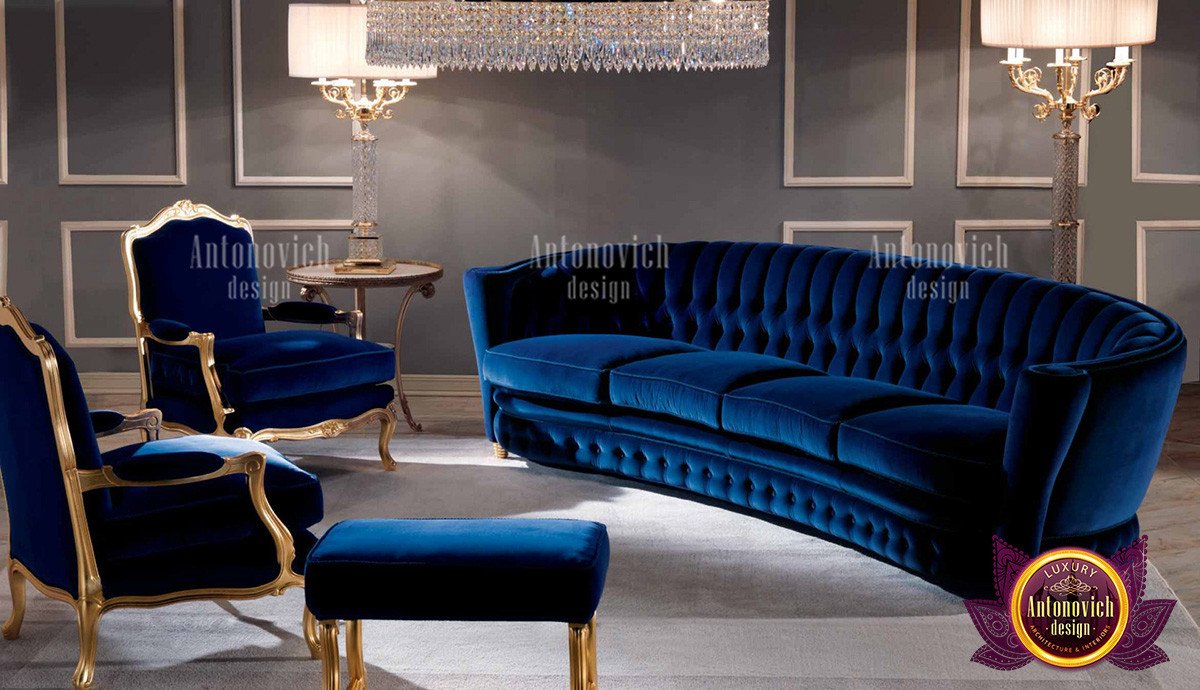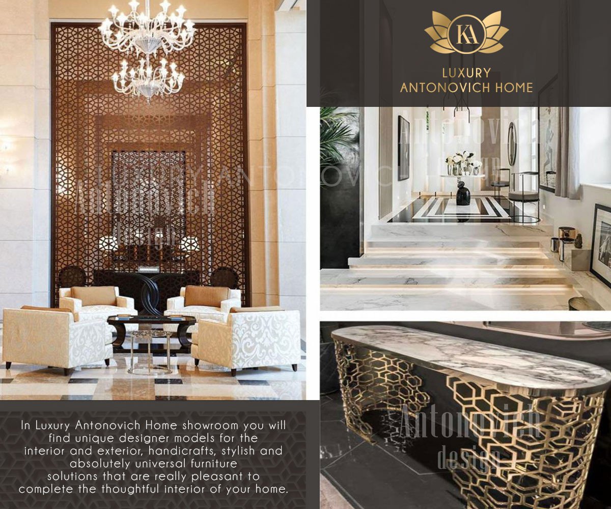 نهج Luxury Antonovich Home في التصميم واضح: فخم ومعاصر. كما نرى، الأرائك المنحنية والأثاث المخملي رائج منذ فترة، وهذا الموسم يهيمن اللون الأزرق الإمبراطوري. نحن نعرض العديد من الأرائك المخملية باللون الأزرق لخيارات متنوعة، بما يجعل صالون بكنبة مخملية زرقاء يبدو فاخراً ويأسر الأنظار. كما نوفّر توريدات أثاث فاخرة تناسب مشاريع السكن والفلل.