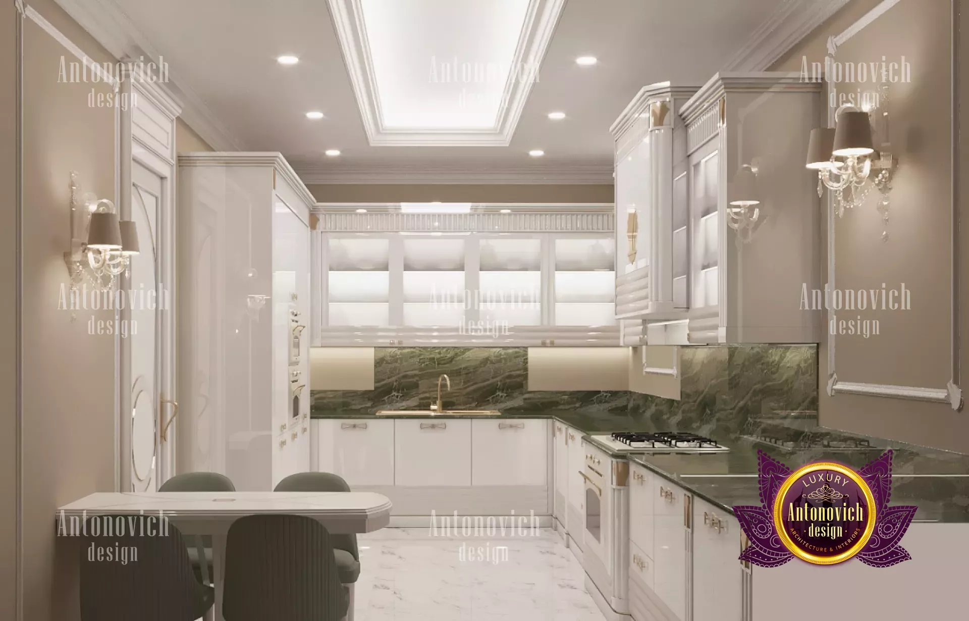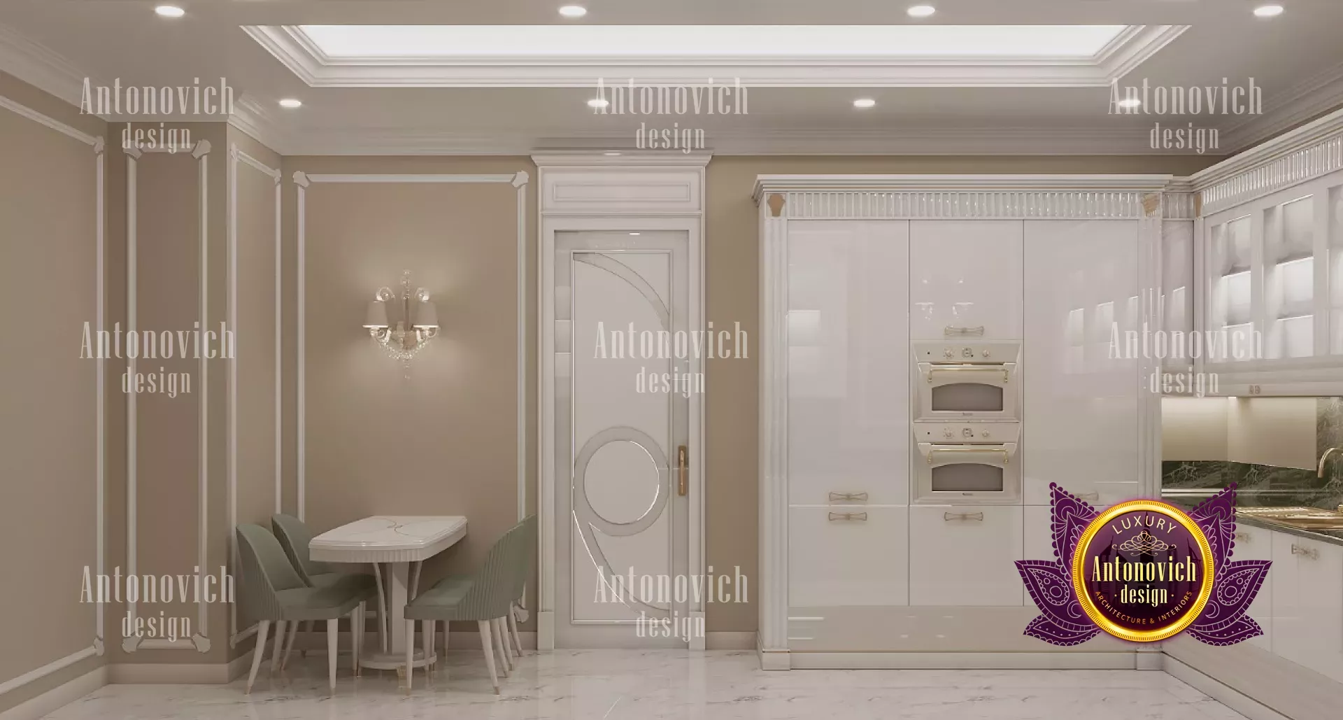 غالبًا ما يرغب أصحاب المنازل في تصميم داخلي فريد للمطبخ. لهذا السبب قدمت أنطونوفيتش ديزاين (Antonovich Design) هذا التصميم الداخلي الفاخر للمطبخ الذي يشبه متحفًا. صُمّم المكان بأكمله بلمسة تقليدية مدروسة. تم تخطيط المخطط الكامل مع الألوان والأثاث المناسبة لخلق أجواء مذهلة وأنيقة. من الخيارات التي تضيف طابعًا خاصًا قطع مثل مجموعة أثاث زانابوني العصرية لتنسيق الخزائن والفراغات. السقف في تصميم المطبخ الفاخر هو أحد محاور الغرفة. تشطيعه المذهل ملفت للنظر بلا شك. صُمّم بحيث يبدو التصميم الداخلي للمطبخ فاخرًا وجميلاً. قطعة إضاءة بيان — مثل ثريا أنيقة — يمكنها أن تضيف رونقًا للسقف. كما نوفر تصاميم أثاث إيطالي مصنوعة من الخشب لقطع مميزة وفاخرة. الجدران في هذا التصميم الداخلي للمطبخ الفاخر جذابة أيضًا. لم تُغفل؛ فقد حرصت أنطونوفيتش ديزاين على أن يكون لكل جدار طابعه الخاص وملامحه. كما يحتوي التصميم الداخلي للمطبخ الفاخر على سجادة كبيرة بنقشة رائعة. المظهر العام للتصميم الداخلي للمطبخ الفاخر مذهل. استكشف مشاريع دبي الأخرى في أفكار تصميم منزل فاخر. اطّلع أيضًا على دليل تصميم منزل فاخر لاكتساب رؤى أوسع حول المساحات الراقية. يمكن لأسلوب أنطونوفيتش ديزاين أن يحوّل أي فكرة أو ثيمة تختارها لتصميم مطبخك الفاخر إلى واقع! يحافظ هذا العمل الأبيض النابض بالحياة للشركة الحائزة على جوائز على طابعٍ راقٍ وأنيق.