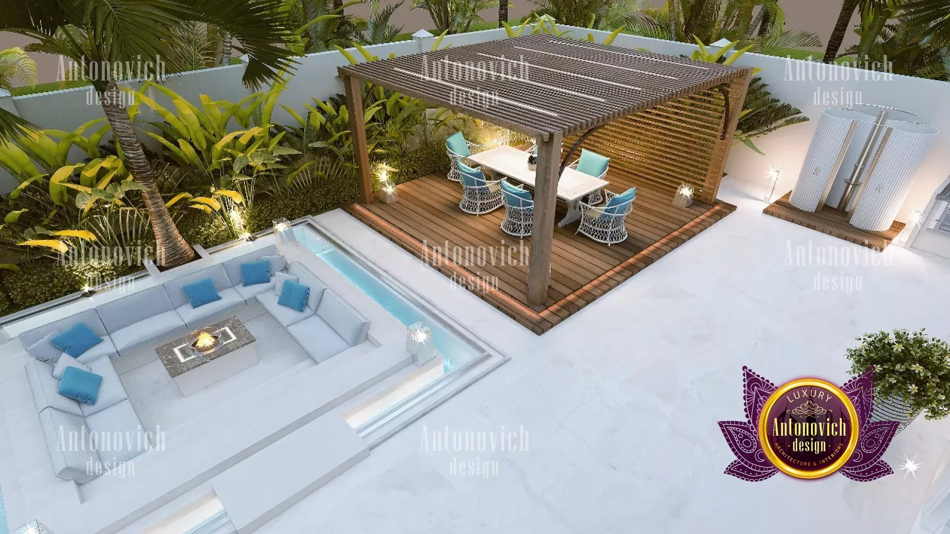 وجود "غرفة معيشة" متطورة في تصميم الحدائق مع مسبح يُعد أساسياً، وقد توضع على منصة مرتفعة قليلاً مع أرائك وبوف وطاولات لتقديم المقبلات. للمزيد من أفكار التنسيق، اطلع على دليل ديكور غرفة المعيشة. فكّر أيضاً في مرافق ملحقة بالمسبح مثل تصميم حمام فاخر لتسهيل الوصول. تتضمن الحلول العملية أفكاراً لـ تصميم حمام رائع ومساحات تغيير بلمسات عصرية، أو أفكار حمام أنيقة إن رغبت بالمظهر المودرن. ومع ذلك، يجب أن تتعايش الجماليات والوظائف؛ لذا احرص على توفير مناطق مظللة وباردة ومعزولة جيداً من المطر والرياح لتوفير تجربة مريحة وآمنة. هناك عناصر تجمع بين التصميم والجودة والعملية لتلبية أي حاجة، خاصة إذا كنت محتاراً بين مظلة حديقة أو مظلة ثابتة أو جازبو.