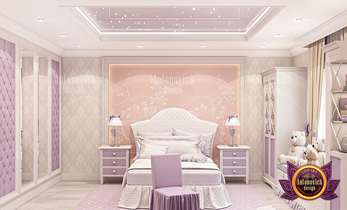 القصور والخيالات تُلهمنا بحلم ممالك بعيدة ومساحات معيشة فاخرة. ونستوحي بعض الأفكار من تصاميم منازل كاليفورنيا التي تجمع بين الراحة واللمسات الفاخرة. إذا كنتِ تبحثين عن مساحة تليق بالملكات، فإليكِ تصميم أنيق يستحق النظر. مع الأثاث والتصميم الداخلي الذي أنشأته أنطونوفيتش ديزاين (Antonovich Design). أنطونوفيتش ديزاين صممت هذا التصميم الداخلي الجميل بأثاث يتجاوز كل توقع، مخصص للسيدة التي تتمنى غرفة نوم حالمة وفاخرة. اللون البنفسجي رقيق وذو تفاصيل دقيقة. الطابع العام للغرفة أميري بألوان البنفسج والكريمي، مما يمنح مظهراً رومانسياً مع لمسة أناقة لملكات المستقبل. ستشعرين وكأنكِ من العائلة المالكة بفضل تناغم الألوان المذهل. نقشة الماس المخططة فريدة وتُرى في عدد قليل من الغرف فقط. الكراسي ونجارة غرفة الملابس المخصصة والمرايا والمصابيح والمواد الأخرى ممتازة وتنسجم مع الطابع العام لغرفة النوم. التصميم الراقي من إبداع مصممي أنطونوفيتش ديزاين. الأثاث مُصنع حسب الطلب والتصميم مميز بالفعل. أحد العناصر الملحوظة في الغرفة هو استخدام الباستيل الوردي على الجدران. إلى جانب الأبيض والبنفسجي، أضفنا درجة باستيليا من الوردي لإضفاء اختلاف لطيف على الغرفة. التصميم الداخلي ديناميكي والطابع العام مُعد لأميرة حقيقية. المواد المختارة فائقة الجمال ومبهرة.