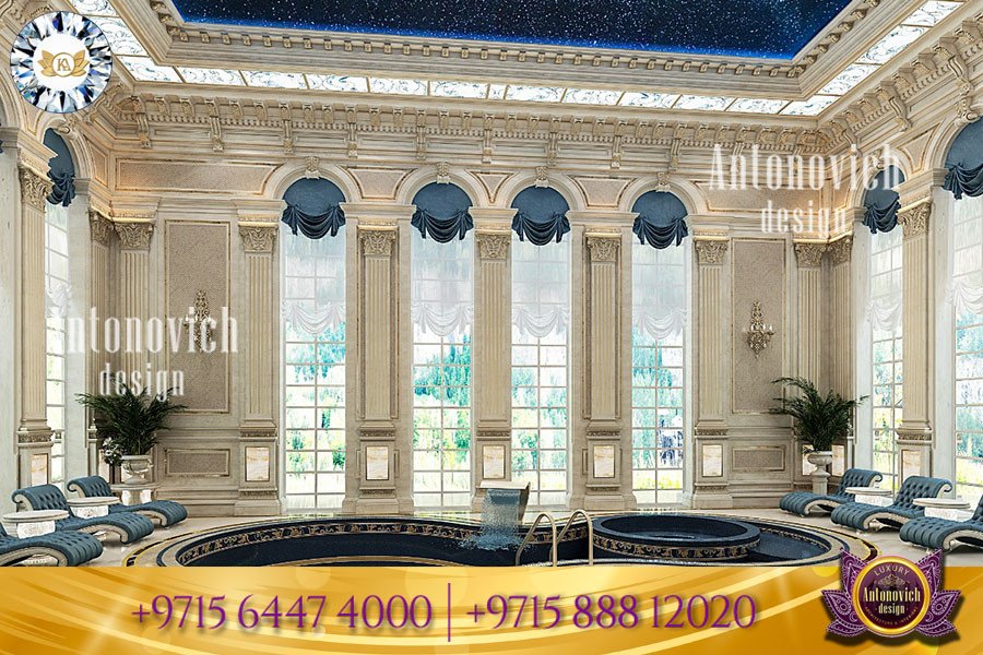 يتطلب تصميم حمام سباحة داخلي فاخر أو متطلبات الطراز الملكي تفاصيل زخرفية فائقة مثل الدرابزينات، والتماثيل، ومجموعات الإضاءة الجديدة، ومواد وتشطيبات دقيقة. معظم المسابح الداخلية تتطلب أرقى المواد وأعلى درجات الحرفية لتتناسب مع الطراز المختار. لذلك نحرص على اختيار مواد فاخرة لمسبح داخلي وتشطيبات مميزة لتحقيق مستوى الجودة المطلوب. يمكن أيضًا الاستلهام من إلهام غرف طعام فاخرة للمفاصل الزخرفية واللمسات النهائية.