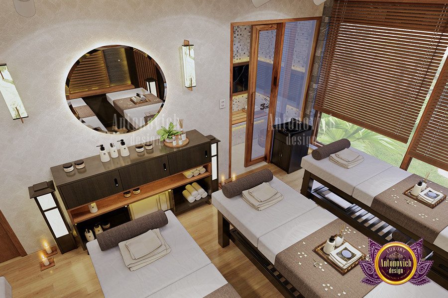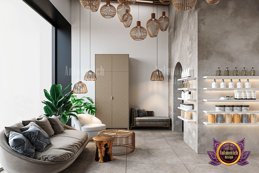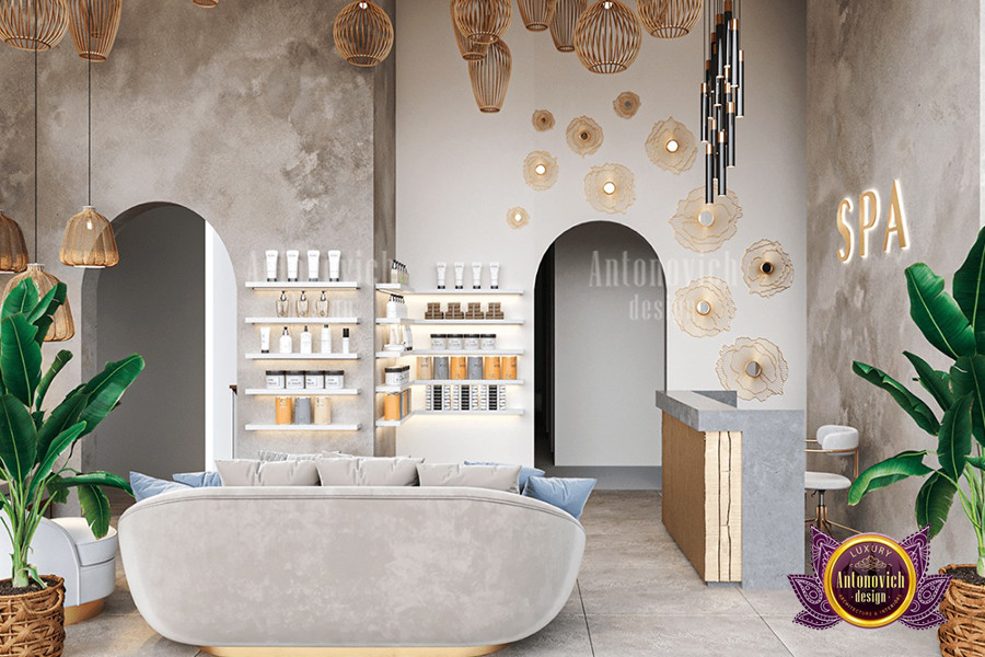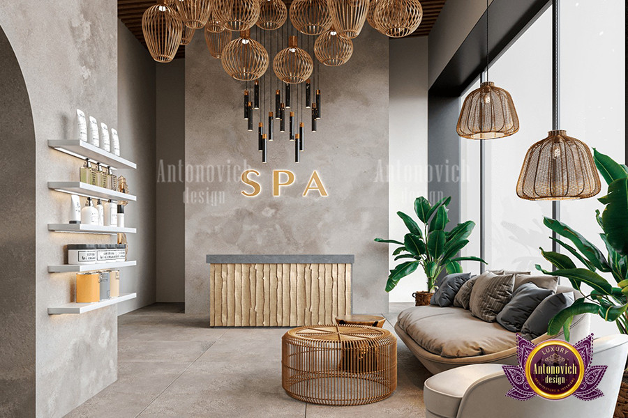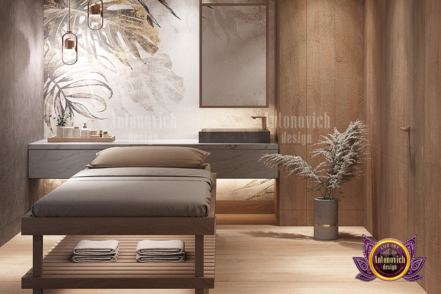 تصميم داخلي بني ممزوج بلمسة أخضر مزرق رائع في هذا التصميم الداخلي الفاخر في الإمارات. بلوحة ألوان مستوحاة من الأناقة، اختيارات ألوان السبا عصرية وفاخرة. الألوان تكمل بعضها بشكل متناغم، مما يجعل هذا التصميم الداخلي مثالياً لسبا فاخر لاحق. كل درجة لونية تلعب دوراً في خلق أجواء طبيعية في السبا، وهذا التصميم الداخلي الإماراتي الفاخر يقدم كل ما تحتاجه. يُعد اللون البني أيقونة حداثية؛ فهو يثري كل ما يلامسه. يمكن لفريق أفضل المصممين الداخليين في الإمارات مساعدتك في متاجر الأثاث الفاخر والديكور أو تصميم داخلي كامل. كما نقدّم دليل شراء الأثاث أونلاين لمساعدة العملاء.
