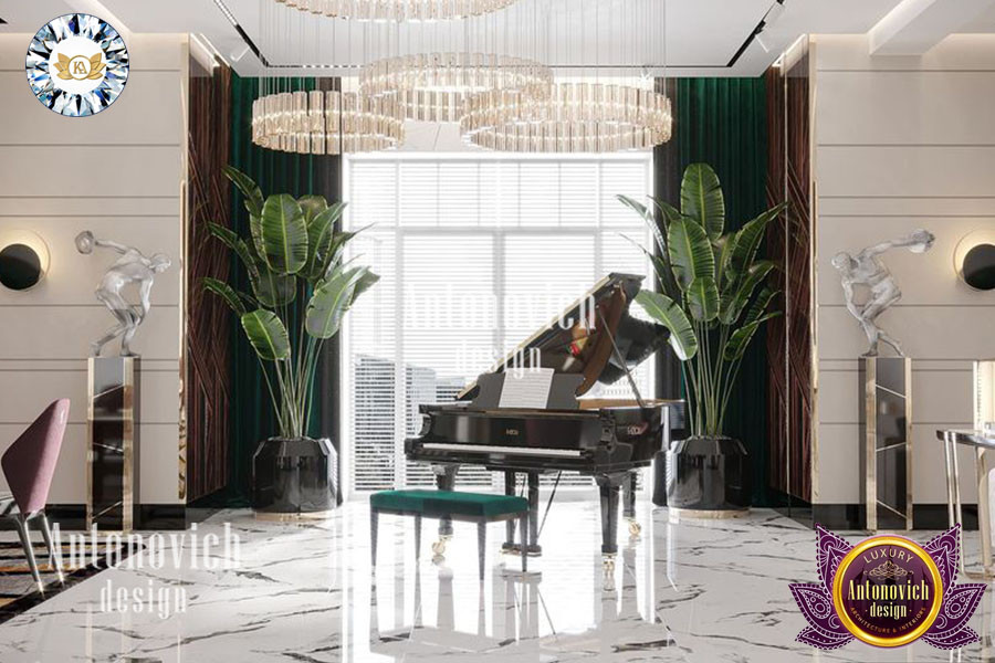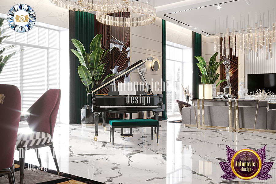 ابتكار أفكار تصميم غرفة المعيشة الفاخرة يضيف طابعاً ساحراً على المشهد الداخلي. للعملاء الشغوفين بالموسيقى والفن، تشكل المساحات الرئيسية مثل غرف المعيشة قوائم عرض فنية تشمل التماثيل واللوحات والصور الفوتوغرافية وغيرها من الأعمال الفنية. في الفلل الفاخرة الواسعة قد يُستخدم البيانو الكبير كعنصر جذب رئيسي، ما يعزّز تجربة التجمعات الصغيرة واللقاءات العائلية. تُكمَل هذه المساحات غالباً بأثاث فاخر لغرفة المعيشة في دبي لتكتمل التوزيع الجمالي، وتَشمل حلولهم تصميم غرفة معيشة حديثة تناسب الطابع المعاصر.