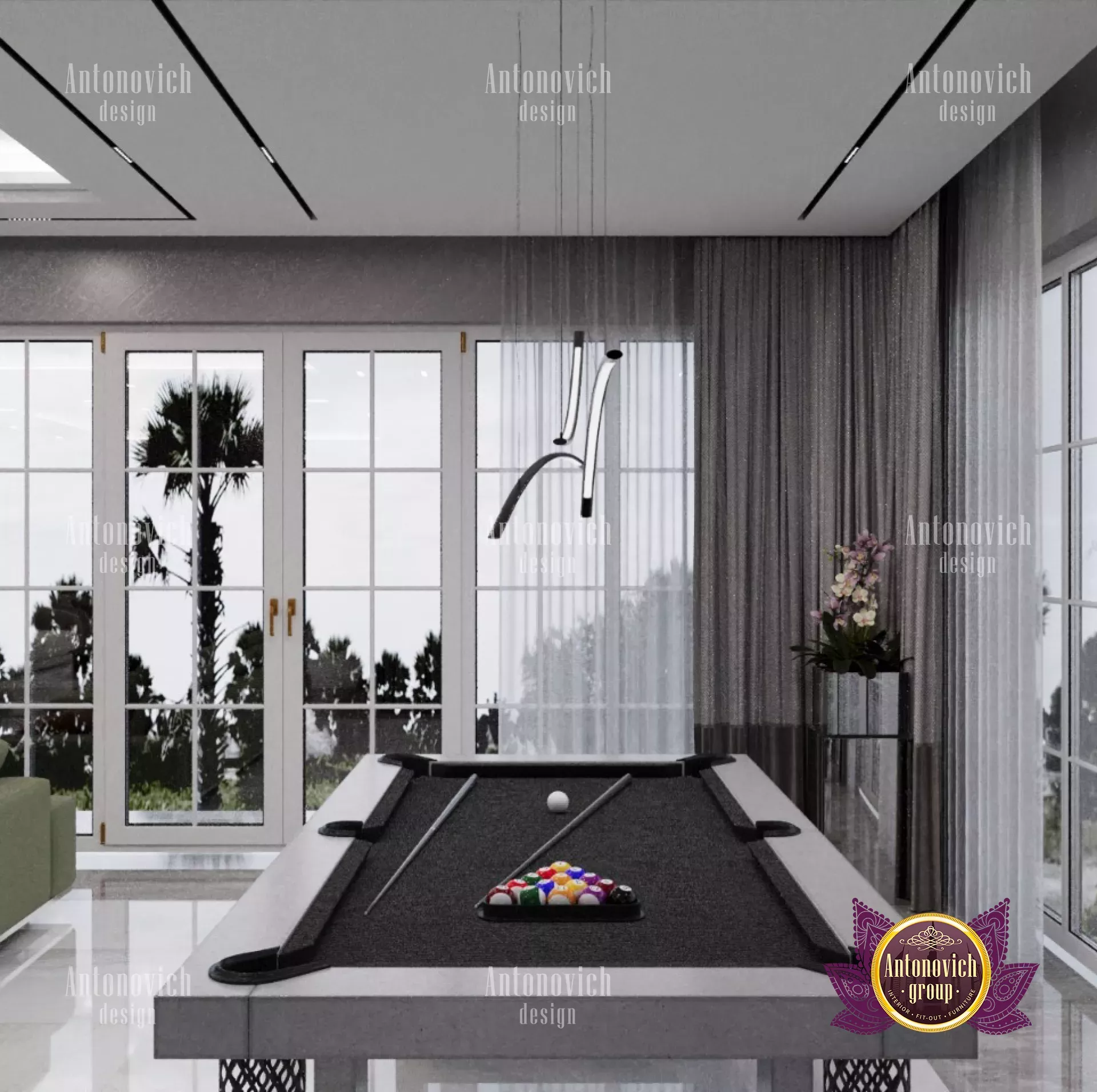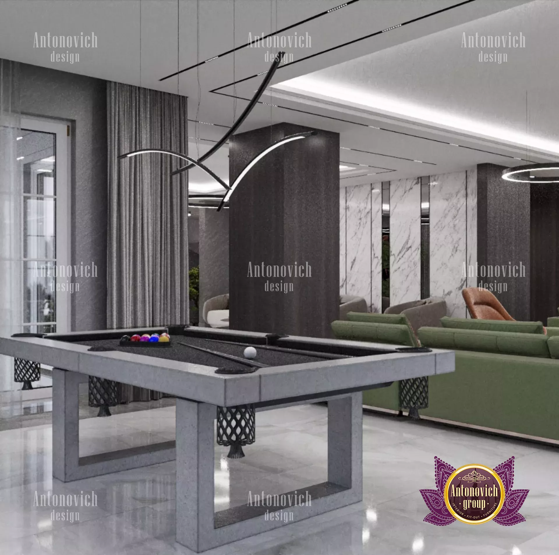 الاستفادة من البناء المدمج ضمن التصميم الداخلي في دبي هي إحدى أفضل الطرق لتبسيط غرفة بلياردو منزلية فاخرة. عندما تُبنى المقاعد والتخزين داخل الجدران، لا تشغل مساحة وسط منطقة اللعب. يحتاج اللاعبون إلى الدوران حول الطاولة وتحريك العصا في جميع الاتجاهات، وخصوصاً عالياً. لذا فكر في إنشاء خزائن تلتصق بالجدران أو تندمج فيها لزيادة الفراغ. يمكنك تركيب أسطح وتوفير أثاث منخفض للتخزين الإضافي. كذلك، وجود أريكة مزدوجة مدمجة قد يمنح الغرفة شعوراً بالدفء والاتساع.