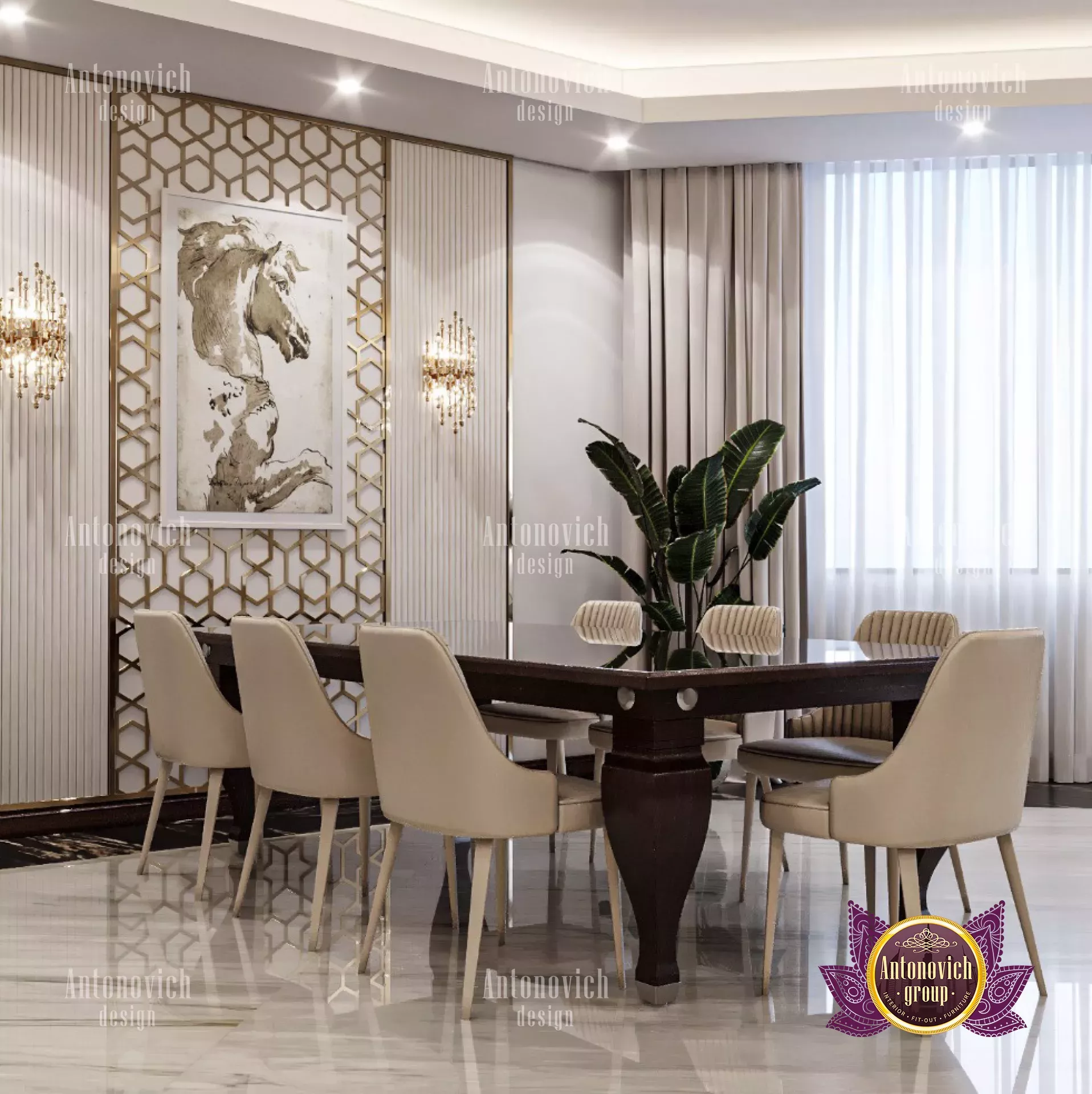 في مقابل الجدران البيضاء، أنطونوفيتش ديزاين (Antonovich Design) تخلق بيئة أنيقة وعصرية تماماً. الجدران البيضاء توفر خلفية معاصرة مثالية للكريستال، بينما تمنح الكراسي العاجية لمسة من الرقي. ويُمكن أن يتناغم ذلك مع غرفة نوم جميلة بتفاصيل قماشية مماثلة. الأشكال الشائعة لطاولات الطعام الفاخرة تشمل الدائرية، البيضاوية، المستطيلة والمربعة. بدائل المواد تشمل الجلد، الغرانيت، الرخام والخشب. لاحدىث مظهراً عصرياً اختر أثاثاً وإضاءات بخطوط انسيابية. اطلع على تصاميم أثاث مبتكرة لرفع مستوى منزلك. الشموع والشمعدانات كلاسيكية لكنها لا تزال مطلوبة؛ تتوفر بتشكيلات مختلفة من الأحجام والألوان والأنماط. اختر شموعاً أنيقة تتناغم مع ديكورك؛ الشموع الفضية أو الذهبية مثالية لأجواء رسمية. إذا كنت تميل إلى اللمسات الذهبية، راجع تصميم حمام بلمسات ذهبية ولنصائح أوسع، اطلع على نصائح تصميم حمام فاخر. ولأجواء أكثر حميمية، اختر شموعاً بالأبيض أو الأسود بألوان محايدة. إذا رغبت في فكرة مبتكرة للشموع، استخدم حوامل فويتيف من الزجاج أو المعدن. السر في منح ضيوفك تجربة طعام مدهشة يكمن في اختيار تصميم يتناسب تماماً مع احتياجاتك ومساحة منزلك.