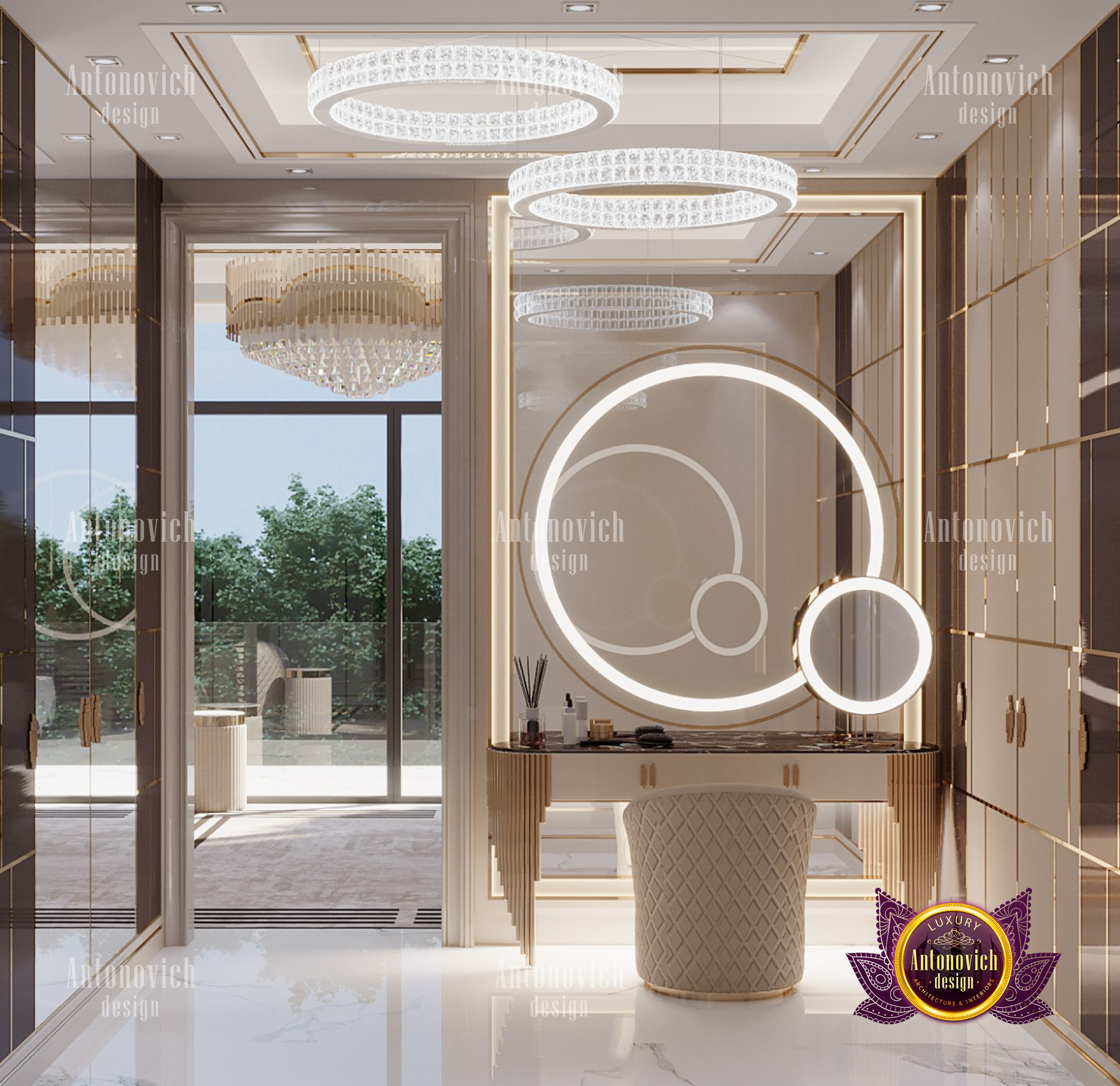 تتسع المساحة الواسعة لمجموعة كبيرة من الملابس. طاولة كبيرة في غرف الملابس الفاخرة تمنحك مساحة لعرض مقتنياتك الثمينة. تبرز مساحة التصميم الداخلي الواسعة والسقوف المرتفعة الشعور بالفخامة. كما يضم التصميم الداخلي لغرفة الملابس الفاخرة الإضاءة المناسبة لتعزيز المشاعر الهادئة في المكان. تصميم غرفة ملابس فاخرة بنسق أنيق يخلق جوًا ساحرًا لا يملّ منه أي زائر. يجب أن يتوافر أثاث فاخر لغرفة الملابس بأشكال متميزة، وغالبًا ما يُستقدَم من مصنعي أثاث عالي الجودة أو اطّلع على أثاث دبي الفاخر. كما تحتاج الغرفة إلى تصميم خزانة ملابس واسعة يمنح حرية الحركة وإحساسًا بالانفتاح. كل هذه المزايا تراها في هذا التصميم الداخلي لغرفة الملابس الفاخرة الذي نفذته أنطونوفيتش ديزاين (Antonovich Design)، شركة تصميم داخلي في دبي شركة تصميم داخلي في دبي. صُمم هذا المكان ليفجّر فيك شعور الحماس في كل مرة تدخلها. تصميم دولاب المشي الفاخر هنا يوفّر مساحة رحبة مع حرية للتنقل والراحة.