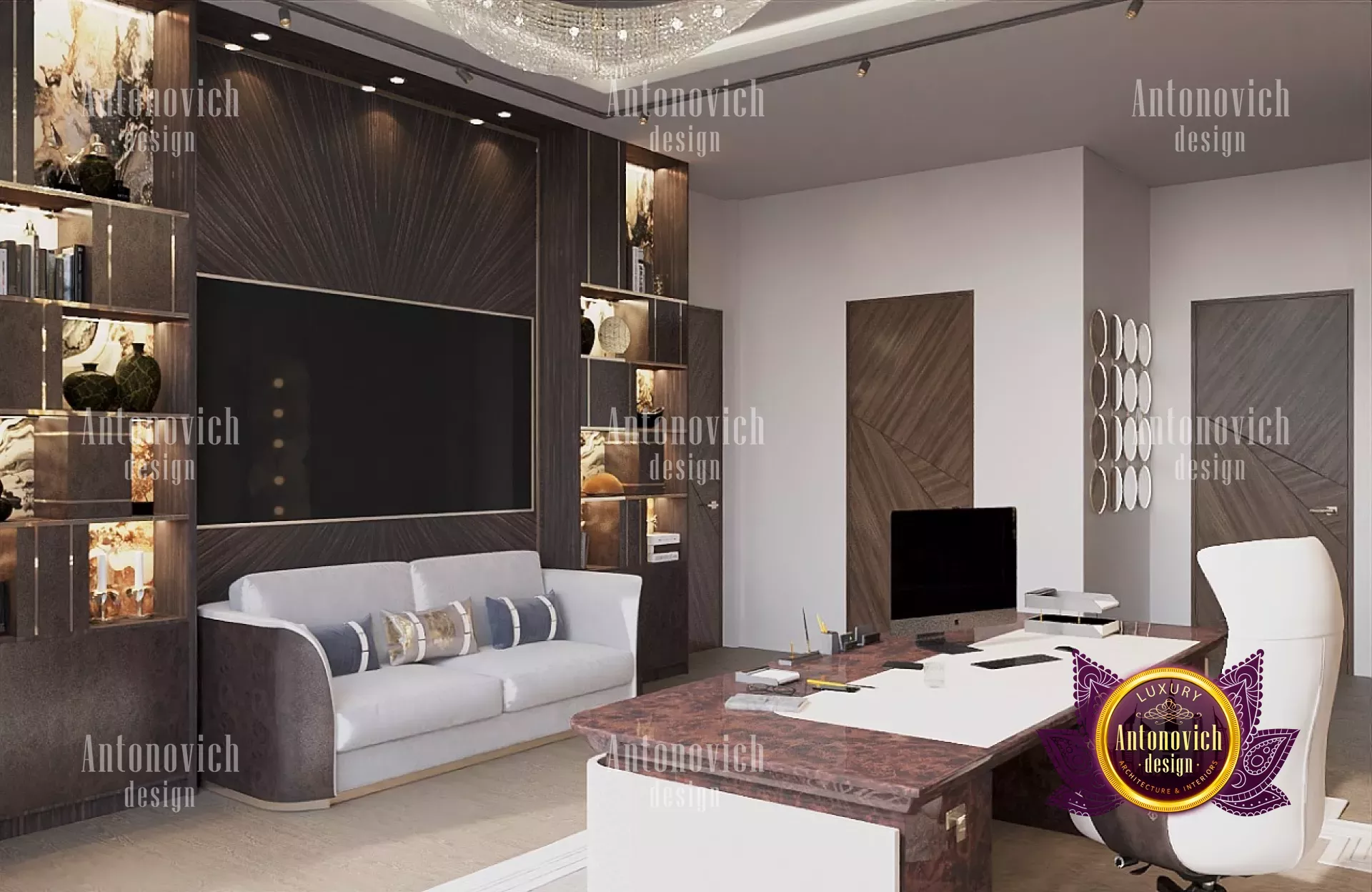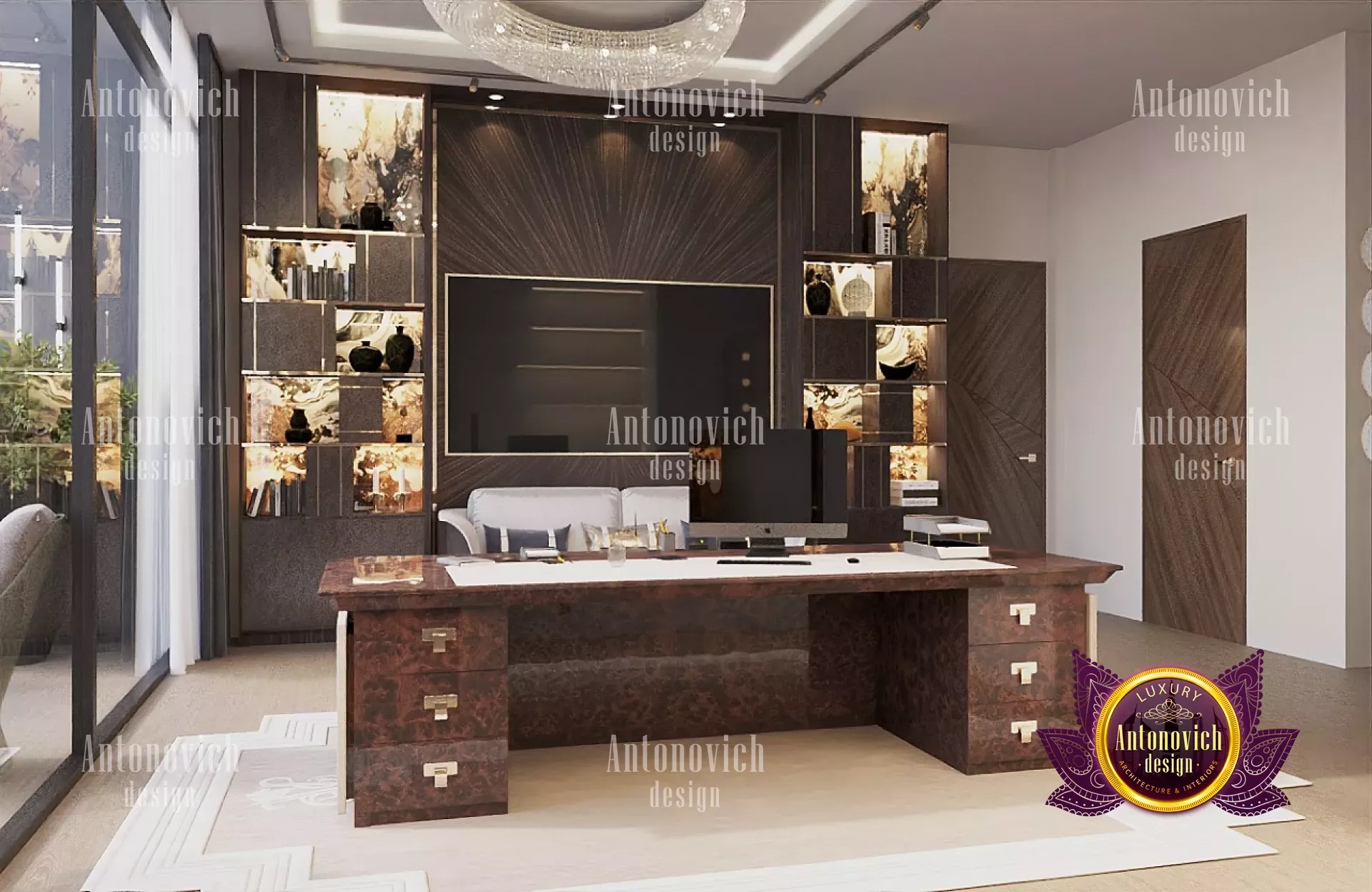 هل تبحث عن مصمم داخلي في دبي؟ يمكن لـ أنطونوفيتش ديزاين (Antonovich Design) مساعدتك في خلق تصميم مكتب منزلي فاخر يُجسّد رؤيتك. سواء كنت تبحث عن فريق محلي أو ارتباط دولي، راجع مهندس معماري من الصومال. هذه الغرفة بموضوعها البني تمنح إحساساً بالرُقي؛ أحياناً يستلهم المصممون عناصر من مشاريع مثل تصميم غرفة نوم طراز رويال. وللمزيد عن تجهيزات النوم الفاخرة، اطلع على دليل أسرّة فنادق فاخرة. المساحة الواسعة تستوعب زوّارَك، والأثاث عالي الجودة يعزز طابع تصميم مكتب منزلي فاخر. الطاولات والكراسي متناسقة في التصميم، والرفوف والخزائن توفر تخزيناً وافراً؛ هنا يمكن الإشارة إلى رفوف مكتبية لمكتب منزلي فاخر كجزء أساسي من التنظيم. الستائر مرتبة على ٣ طيات بشكل مبدع، ونفس النهج الهادئ يظهر في غرفة نوم مريحة وعصرية. الألوان في هذا التصميم غير مملة وتمنح أجواء عمل جذابة؛ للمزيد من أفكار الألوان راجع ألوان مثالية للغرفة. إذا أردنا وصفه بـ "الفريد" فهذا صحيح؛ فدرجات الذهب الفاخرة تبرز في كل المساحة وتمنحها طابعاً أصيلاً!