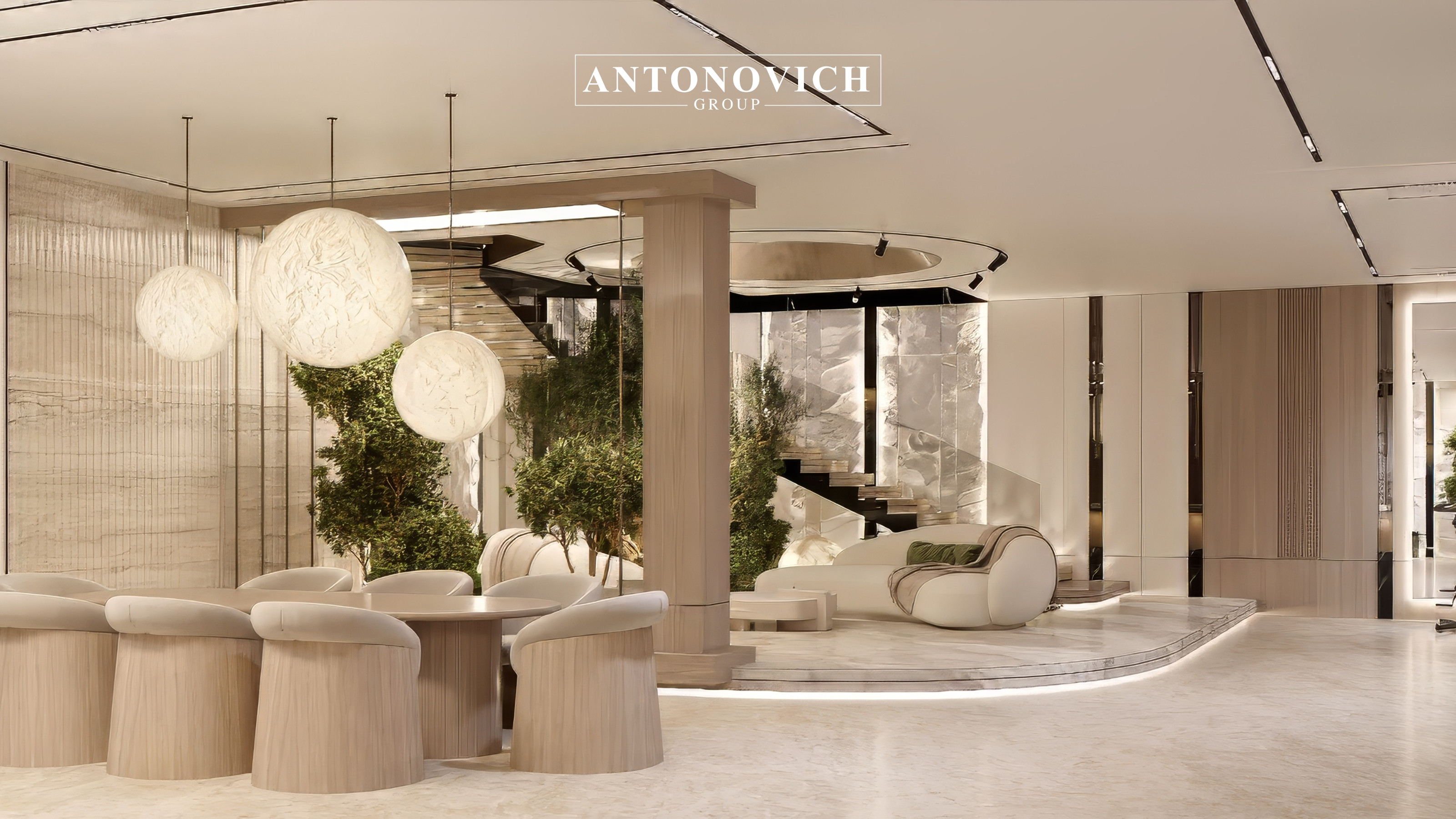 يولي فريق لاكشري أنتونوفيتش ديزاين اهتمامًا خاصًا بتزيين كل تصميم منزل فاخر، ويجب على كل فريق لديه مهمة خاصة أن يأخذ في الاعتبار دائمًا الأصالة في الأسلوب والجاذبية لتحقيق إعداد تصميم داخلي مخصص. سيترك الشكل المثالي للتميز في كل نمط دائمًا تأثيرًا كبيرًا على كل تصميم منزل فاخر. تعتبر الألوان والنسيج أيضًا من اللمسات النهائية التي لا ينبغي إغفالها لتعزيز وتطوير التصميم بشكل مناسب، حيث ستعرض الإعداد النهائي للتصميم الداخلي بالكامل. — بما في ذلك تفاصيل غرفة الطعام — وفي المساحات العامة تلعب أناقة غرفة المعيشة دورًا كبيرًا.