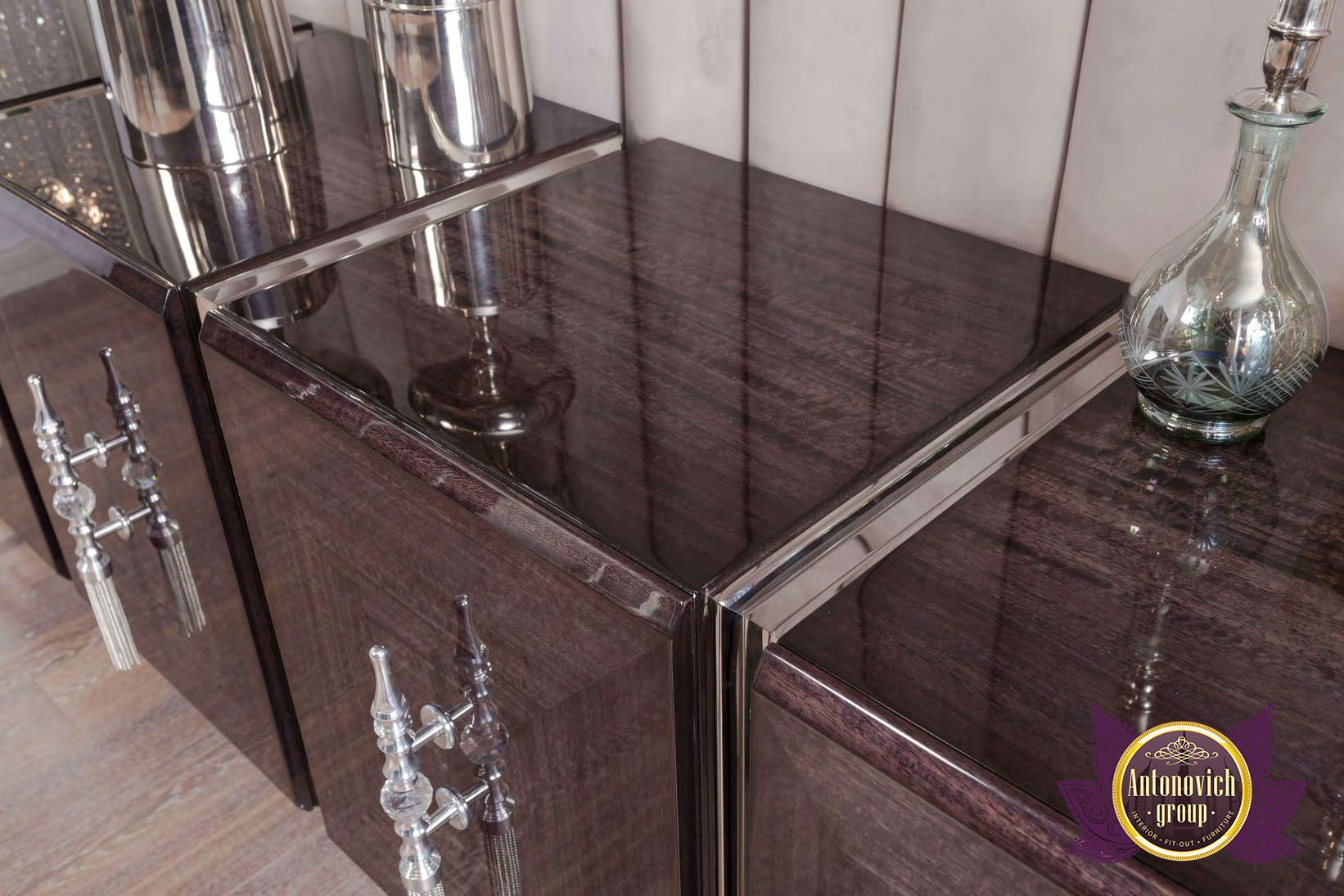 المعدن دائماً يلفت الأنظار. سواء في تقليم النوافذ النحاسية أو تشكيلات الألواح المعدنية التي لا تتأكسد بسرعة، تضفي المعادن لمسة عصرية. يمكن أن تقرأ التفاصيل المعدنية الفاخرة في التصميم الداخلي بجانب لمعان الكريستال لتمنح المنزل حضوراً واضحاً، خصوصاً عند دمج مجموعة سواروفسكي للهندسة المعمارية (Swarovski) مع التفاصيل المعدنية. بهذه الطريقة يمكنك خلق منزل فريد يتوهج تحت ضوء الشمس ويحتل موقعاً بارزاً. لأمثلة تنفيذية على مكاتب مصممة باحتراف، اطلع على مكتب تصميم الكونغو.