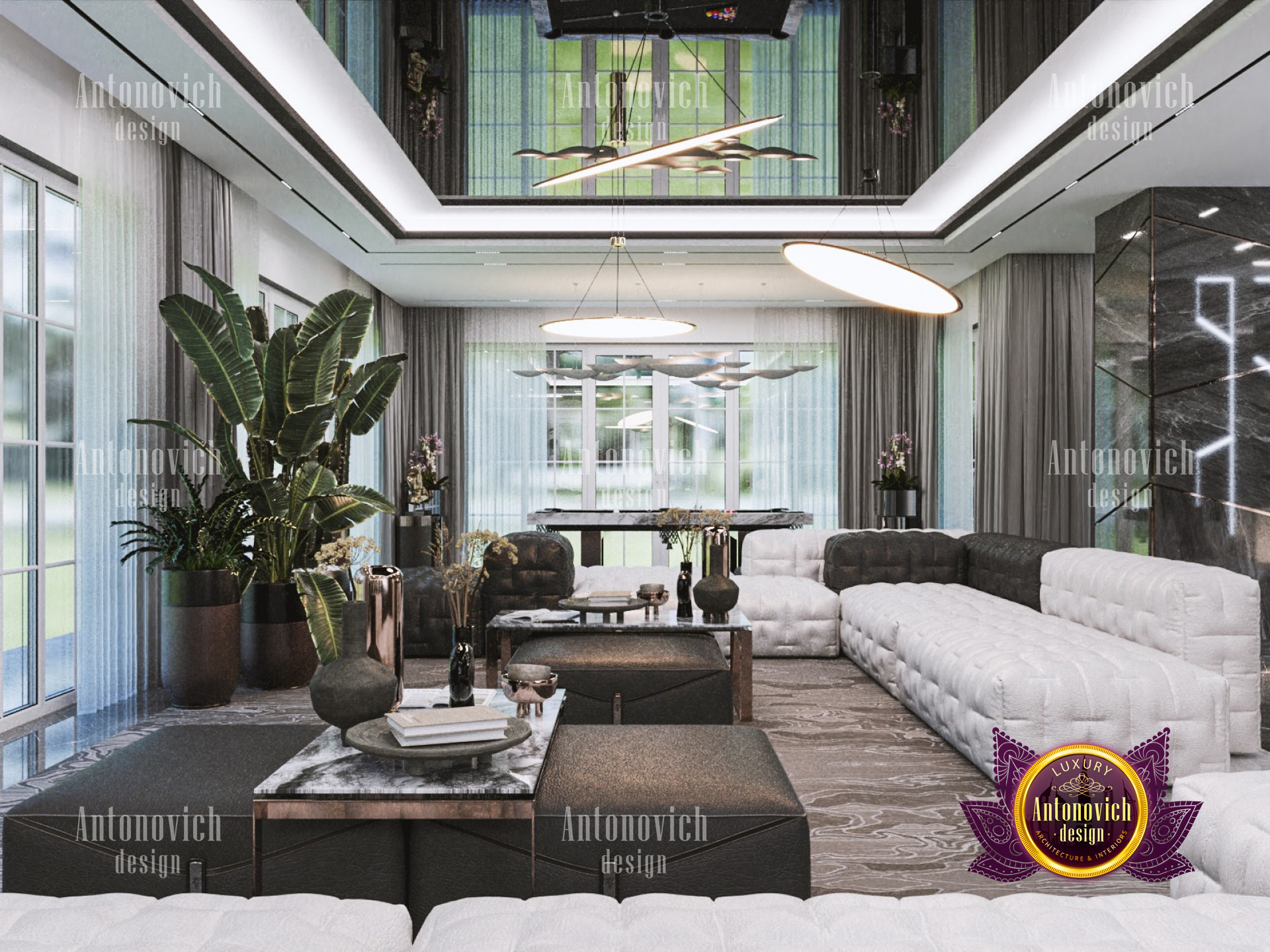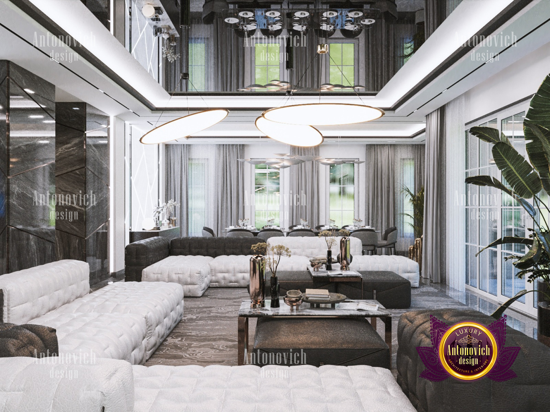 اللمسات النهائية في هذا التصميم الداخلي لغرفة المعيشة الفاخرة تعتمد بشكل كبير على الألوان. على الجدران تم مزج نقوش راقية ودرجات الأبيض والرمادي. نُفّذ التصميم باحتراف ليعزّز قيمة التصميم الداخلي ويمنحك إحساس الفخامة. التنسيق مثالي إذا كنت تبحث عن بيئة مباشرة ومترفة في آن واحد. السجادة الفخمة المصنوعة بخامة عالية الجودة تتناغم مع تصميم غرفة معيشة فاخرة وتعزز حضور ديكور غرفة معيشة فاخرة، بينما يساهم اختيار أثاث فاخر لغرفة المعيشة في الراحة والمظهر المتكامل. للمصادر والتشطيبات الراقية، راجع المنتجات المنزلية الفاخرة. خطوط الجدران المستقيمة تضيف طابعاً متقناً، ولمسات الذهب تعطي أي تصميم غرفة معيشة حديثة مظهراً ساحراً. ستشعر أنت بالتميز والخصوصية بفضل هذا التصميم الداخلي الذي يقدم تفاصيل فخمة ومتقنة.