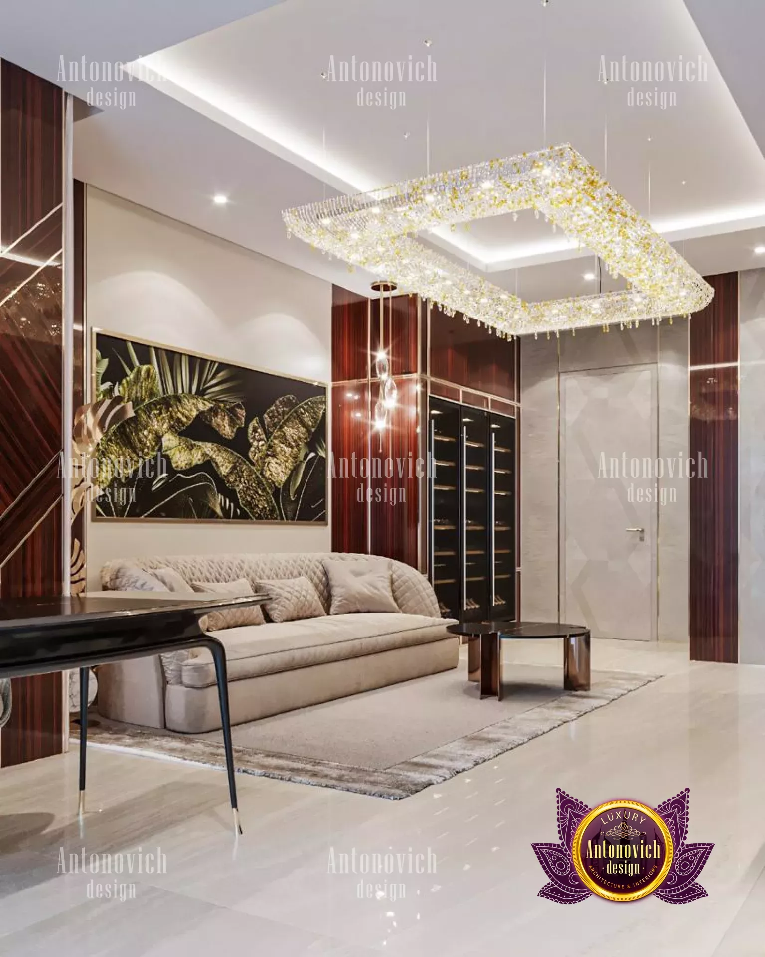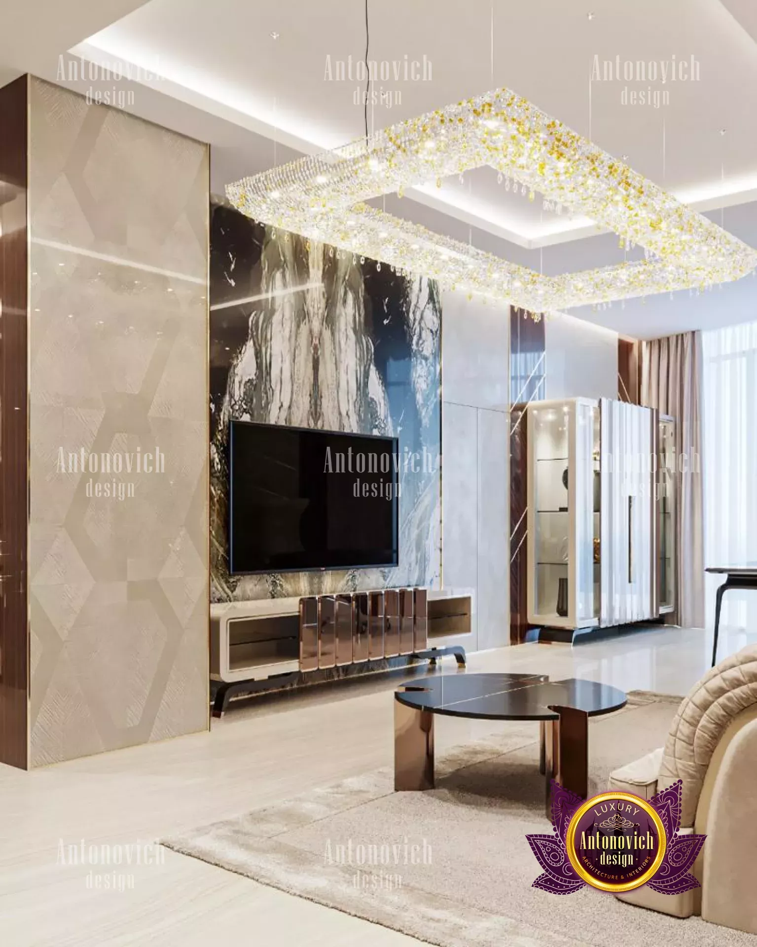 عندما نتحدث عن المنازل الفاخرة، من الضروري التفكير في العناصر التي ستستخدمها يومياً. لا يمكنك إضافة أي قطع إلى منزلك وتوقع مظهر جذاب دون تخطيط دقيق. يجب أن يكون التصميم مخططاً بعناية ومتماسكاً ومترفاً طوال التفاصيل، مثل هذا التصميم الداخلي لغرفة المعيشة الفاخرة في دبي living room interior design. الألوان الرائعة هنا تميل إلى البني والذهبي، وهما يضيفان حيوية وأناقة. كما أن استخدامهما يسهل تطبيقه في المساحات الراقية. يتضمن التصميم الداخلي لغرفة المعيشة الفاخرة أثاثاً فاخراً وتفاصيل راقية. الألوان البني الفاتح تمنح المساحة طابعاً دافئاً ومحايداً يناسب الجميع. لمصدر إلهام للعائلات، راجع صور غرف الأطفال. الزينة الجدارية والستائر المكملة تكمل تصميم الغرفة الفسيح luxury living room interior design. الأنماط الرائعة والأعمال الفنية التي وضعتها أنطونوفيتش ديزاين (Antonovich Design) واضحة في الديكور الجداري. الستائر الأنيقة والفريدة تلفت النظر بتفاصيلها، وهي مثالية لتصميم غرفة المعيشة الفاخرة. لأفكار تفصيلية، راجع تصميم ستائر فاخرة. للاطّلاع على أحدث الأساليب، اقرأ أحدث اتجاهات التصميم الداخلي.