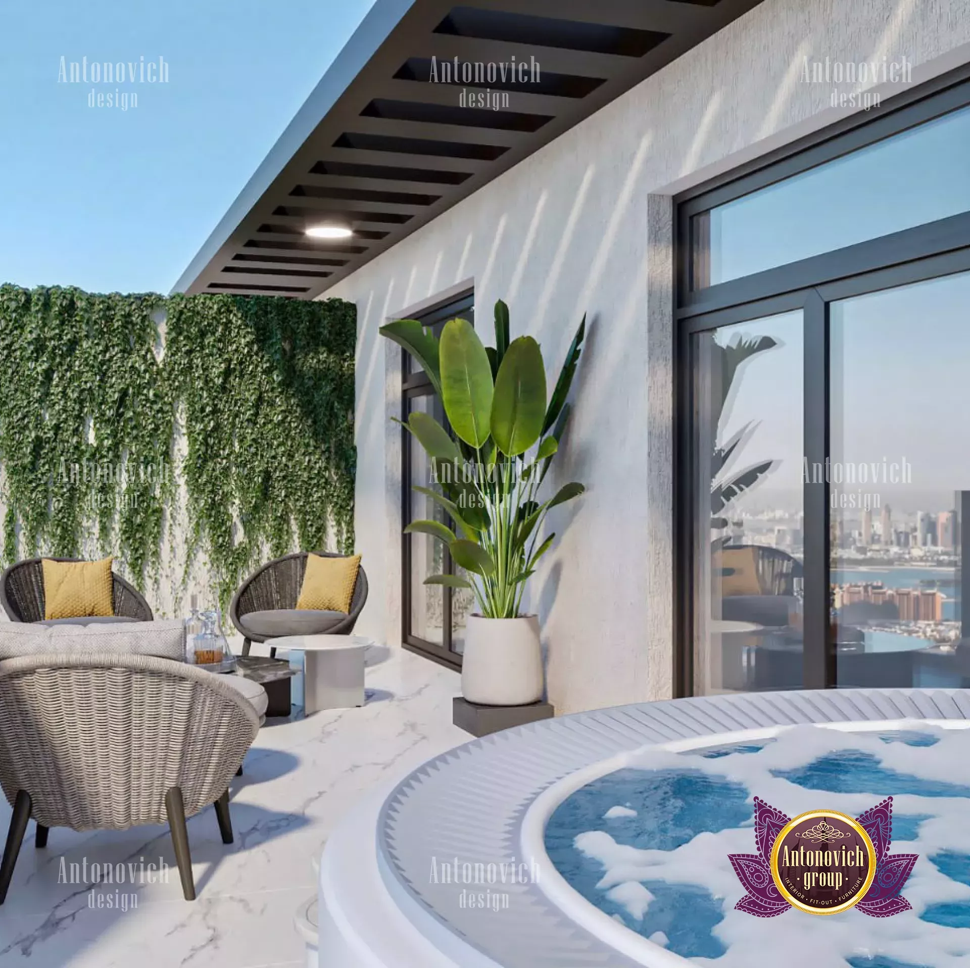 إذا كانت الشرفة متصلة بمساحة سباحة، فضع في الاعتبار دمجها مع تصميم المسبح الداخلي لتدفق بصري ووظيفي سلس.