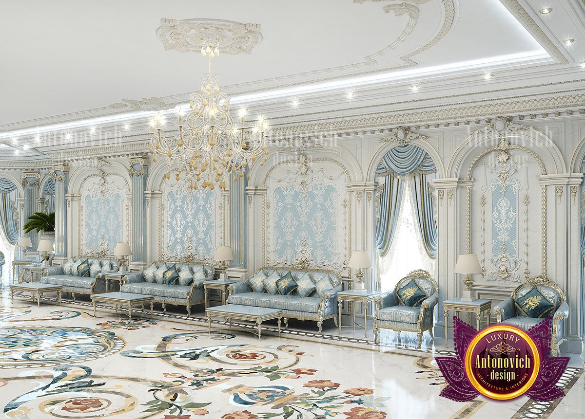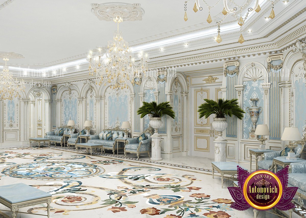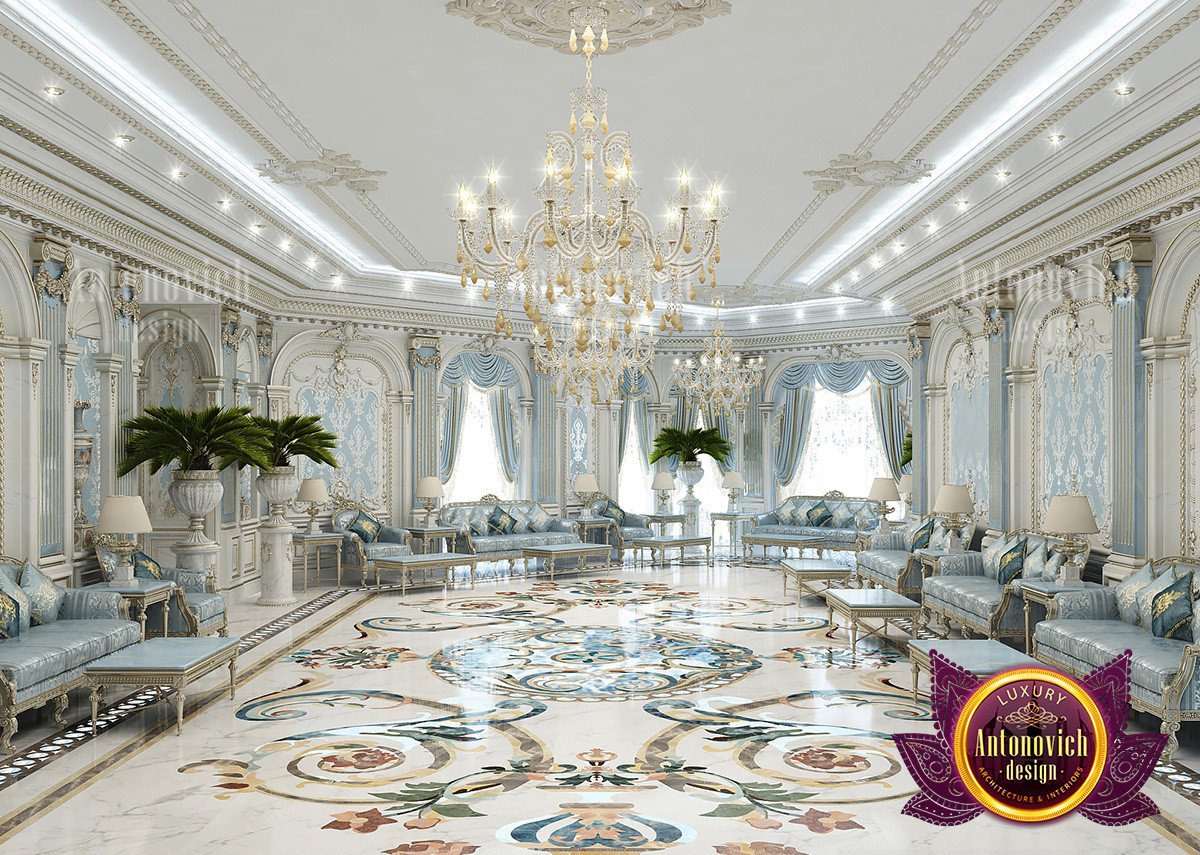 لقد صمم فريقنا الغرفة لاستكشاف مجموعات مختلفة من التصميم، الأسطح، الألوان والمواد. يتركز الاهتمام على ثريا سقفية رائعة مرصعة بتفاصيل مطلية وموزعة أضواء موضعية على حافة المجلس لإضفاء مظهر معاصر. لذلك صممت أنطونوفيتش ديزاين هذا المجلس الضيفي في قصر بلمسة من الراحة والرفاهية. يمكن مقارنة النطاق بالإتقان في مشروع BIGGEST HOUSE العالمي.