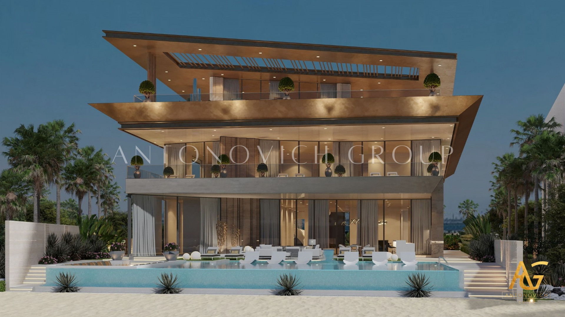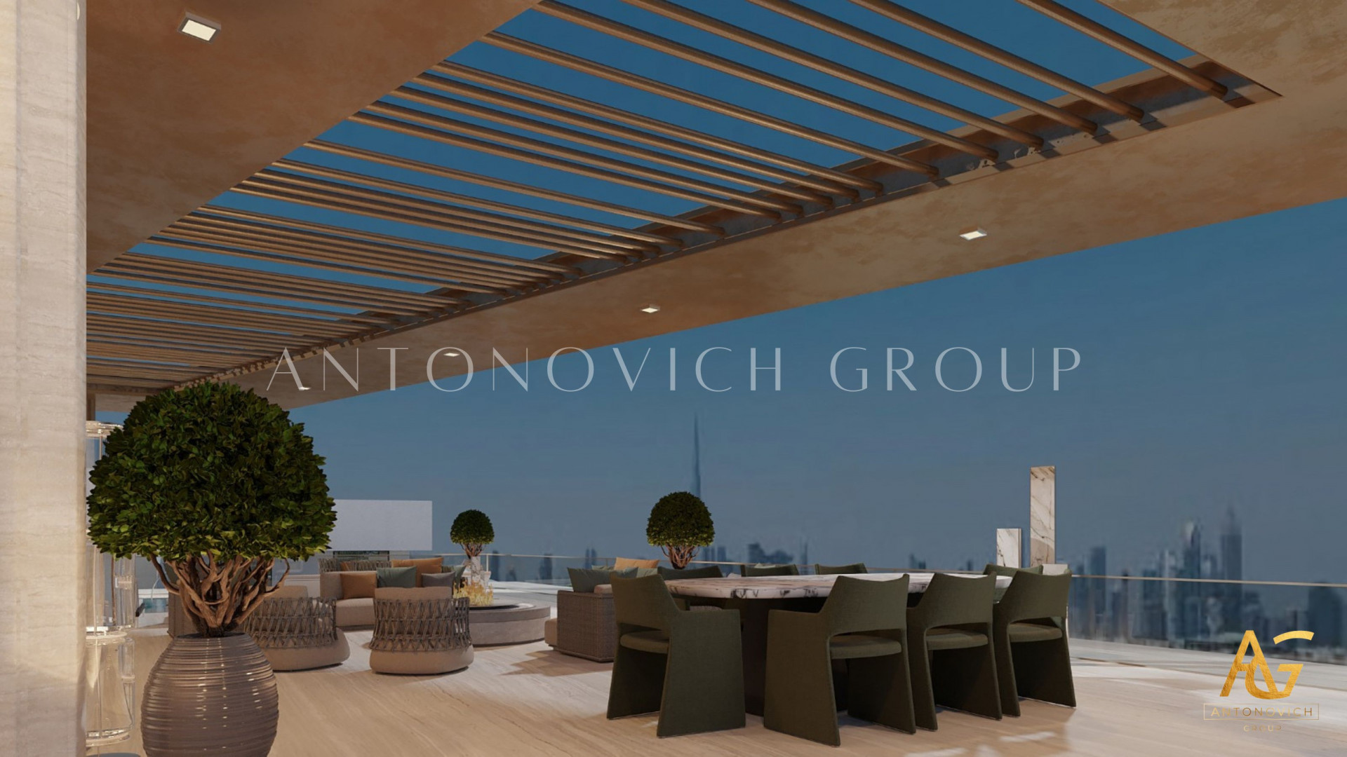 اتبع فريق أنطونوفيتش جروب عملية دقيقة للتخطيط والتنفيذ في تصميم وتنفيذ المناظر الطبيعية. شملت العملية تطوير الفكرة الأولية واختيار مواد فاخرة تتحمّل مناخ دبي، أثاث يدوي عالي الجودة، وتنسيق العناصر الخارجية. ومن خلال فهم تفضيلات العميل والاستلهام من جمالية العلامة الإيطالية، صَمّم الفريق مساحات خارجية تناغمت تماماً مع التصميم الداخلي الرائع.