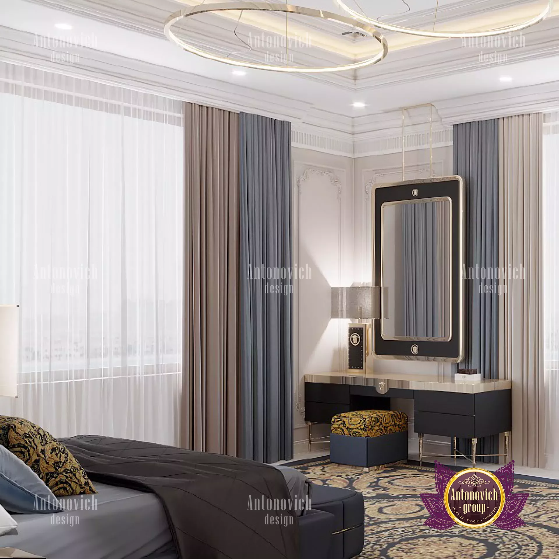إن الألوان في المساحة متناغمة بشكل ملحوظ. يتوافق مسند الرأس الجلد البني الفاخر مع معظم عناصر الديكور البنية الأخرى في المكان. تتناغم درجات البني الفاخرة والأبيض في سجادة المنطقة مع درجات الشوكولاتة والكرمي على السرير. ركزنا على تفضيلات لونية محددة واهتممنا حتى بأدق التفاصيل. هذه إحدى غرف النوم الفاخرة التي يمكن أن تناسب الرجل أو المرأة؛ يمكن تأطيرها كـ غرفة أميرة مع لمسات أنثوية. لمسة فرنسية تقليدية تضيف رُقّة خاصة — تصميم فرنسي كلاسيكي. المساحة بسيطة مع أثاث محدود وجدران عارية وألوان كريمية وبنية بسيطة. هذا مثال رائع على كيف تُقدَّر الأفكار البسيطة من قِبل كثيرين. للأرضية تصميم مميز أيضًا. إن رغبت في الحفاظ على تصميم داخلي لمنزلك عصريًا ومختصرًا، فهذه بداية مثالية. للاطلاع على تصاميم للمساحات التجارية، استكشف تصاميم ردهات مكاتب فاخرة لدينا. راجع مسند الرأس وطاولات النوم المتناسقة، والتشطيب الخشبي الجميل والقطعة المنجدة فوق السرير؛ يمكنك العثور على قطع مماثلة ضمن مجموعة الأثاث الفاخر في دبي. النافذة الكبيرة والضوء المنعكس من المرايا يزيدان الإضاءة في المكان، مضيئين المساحة بأكملها لتصميم داخلي فيلا حديث، واختيار ستائر أنيقة يعزز الخصوصية. اطلع على مخطط فيلا فاخرة 16 لتهيئات مشابهة. قد تفكر أيضًا في إضافة مسبح للفيلا؛ اطلع على تصميم مسبح الفيلا. كما توجد أفكار لتحديث الحمام يمكنك مشاهدتها ضمن أفكار تصميم الحمامات. للمداخل والمناسبات الخاصة، استعرض تشطيب مدخل احتفالي.