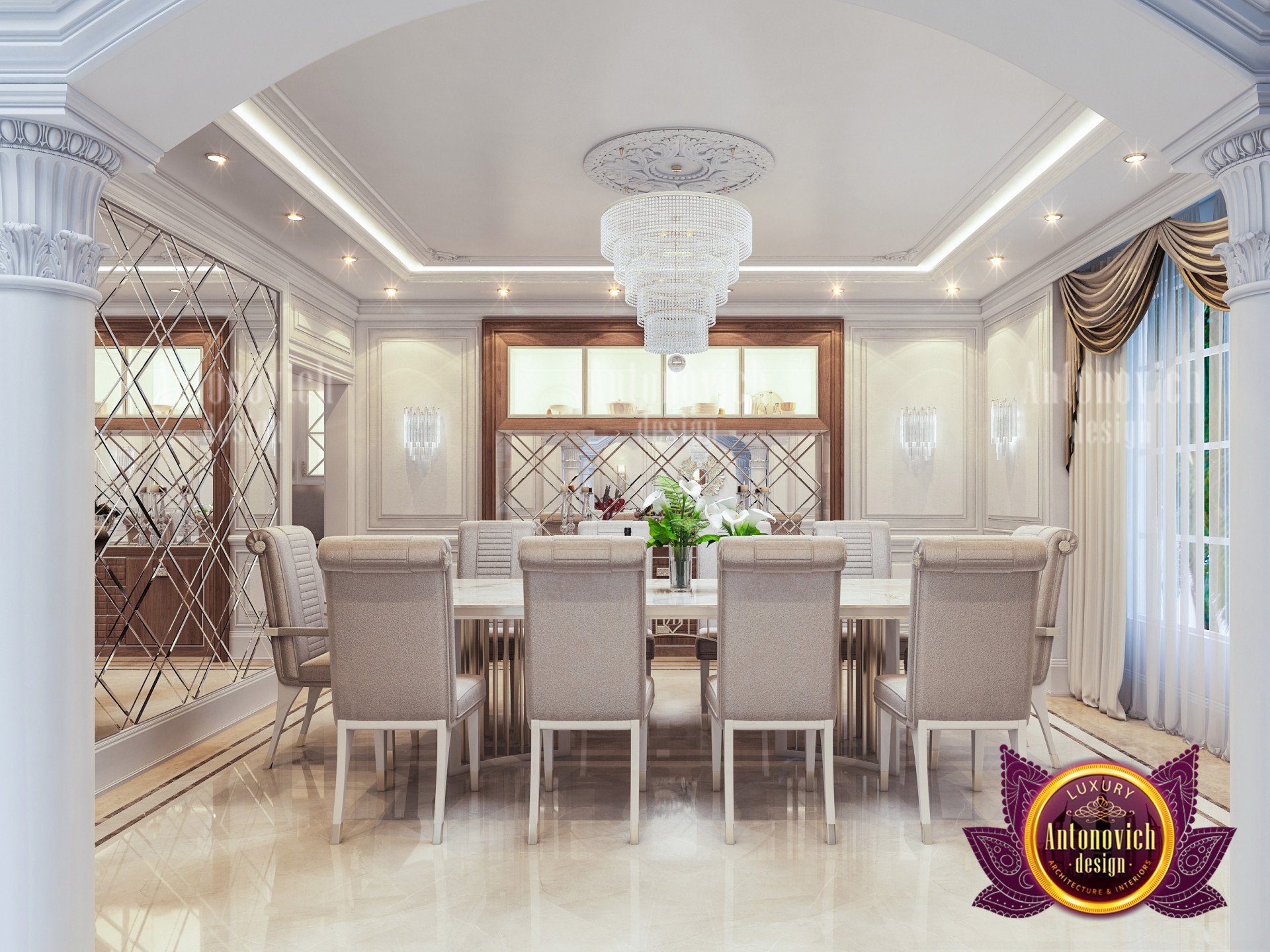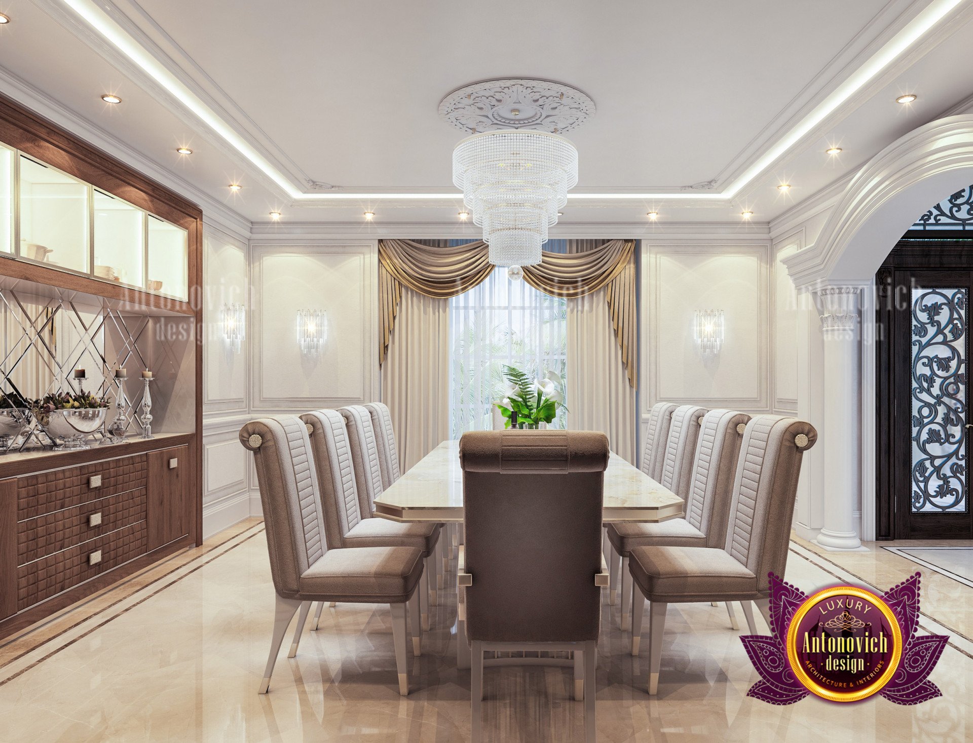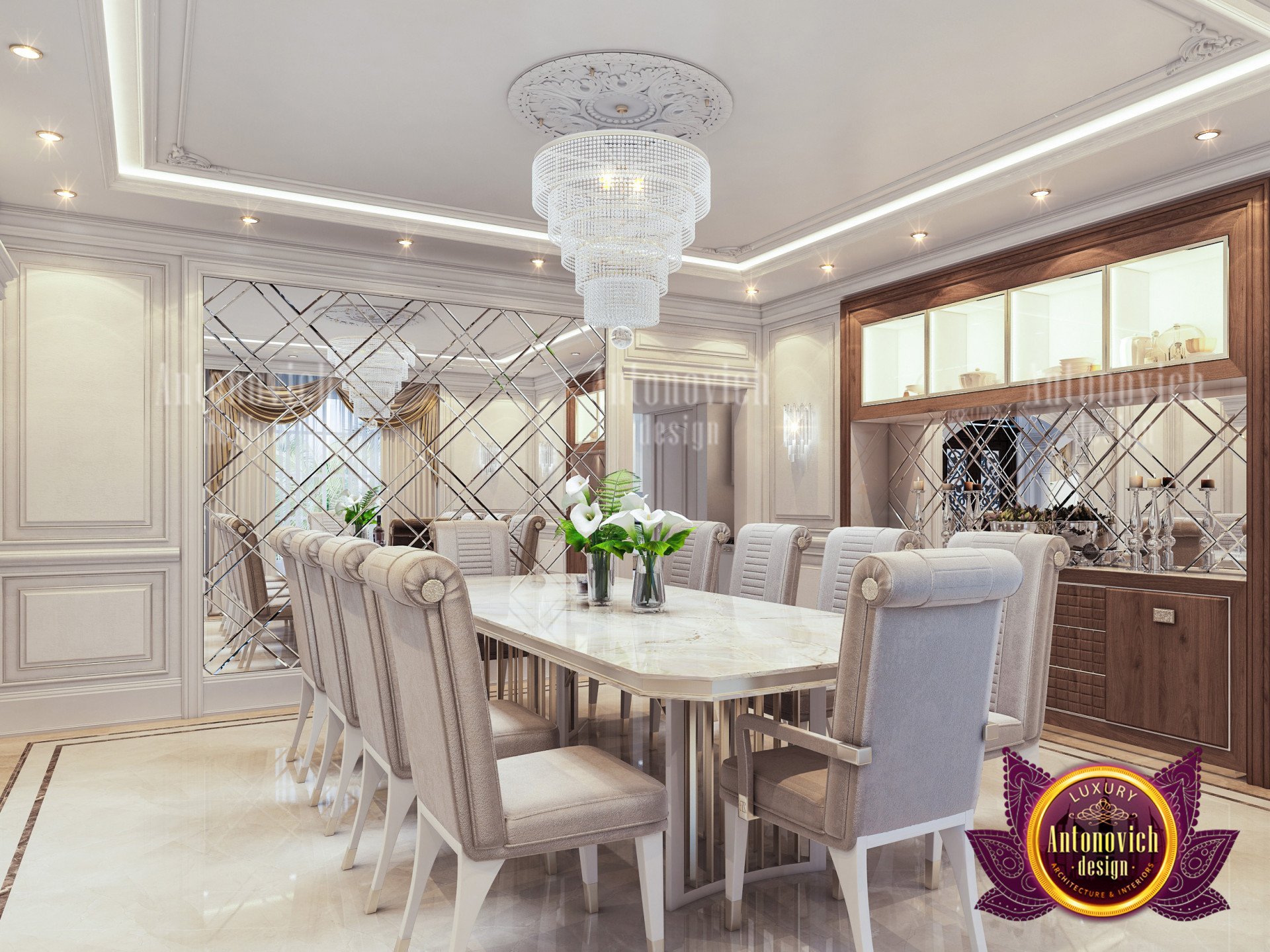 أنطونوفيتش ديزاين (Antonovich Design) هي من أبرز الشركات في تصميم غرفة الطعام، شركة حاصلة على عدة جوائز، تقودها كاترينا أنطونوفيتش وفريق مبدع متخصص يتعاون لابتكار مساحات فاخرة ومتفردة. نضع خبرتنا لتصميم غرفة الطعام بما يعزز الحيوية العامة للمساحة ويمنحك رضاً وتجربة شخصية أفضل. نحن ندرس أسلوب حياتك واحتياجاتك حتى نصمم مساحات وغرفًا شخصية تناسبك أنت. اطلع على أمثلة في فن المنازل الفاخرة، ولأفكار للمساكن الصغيرة راجع أفكار تصميم منزل من ٣ غرف.
