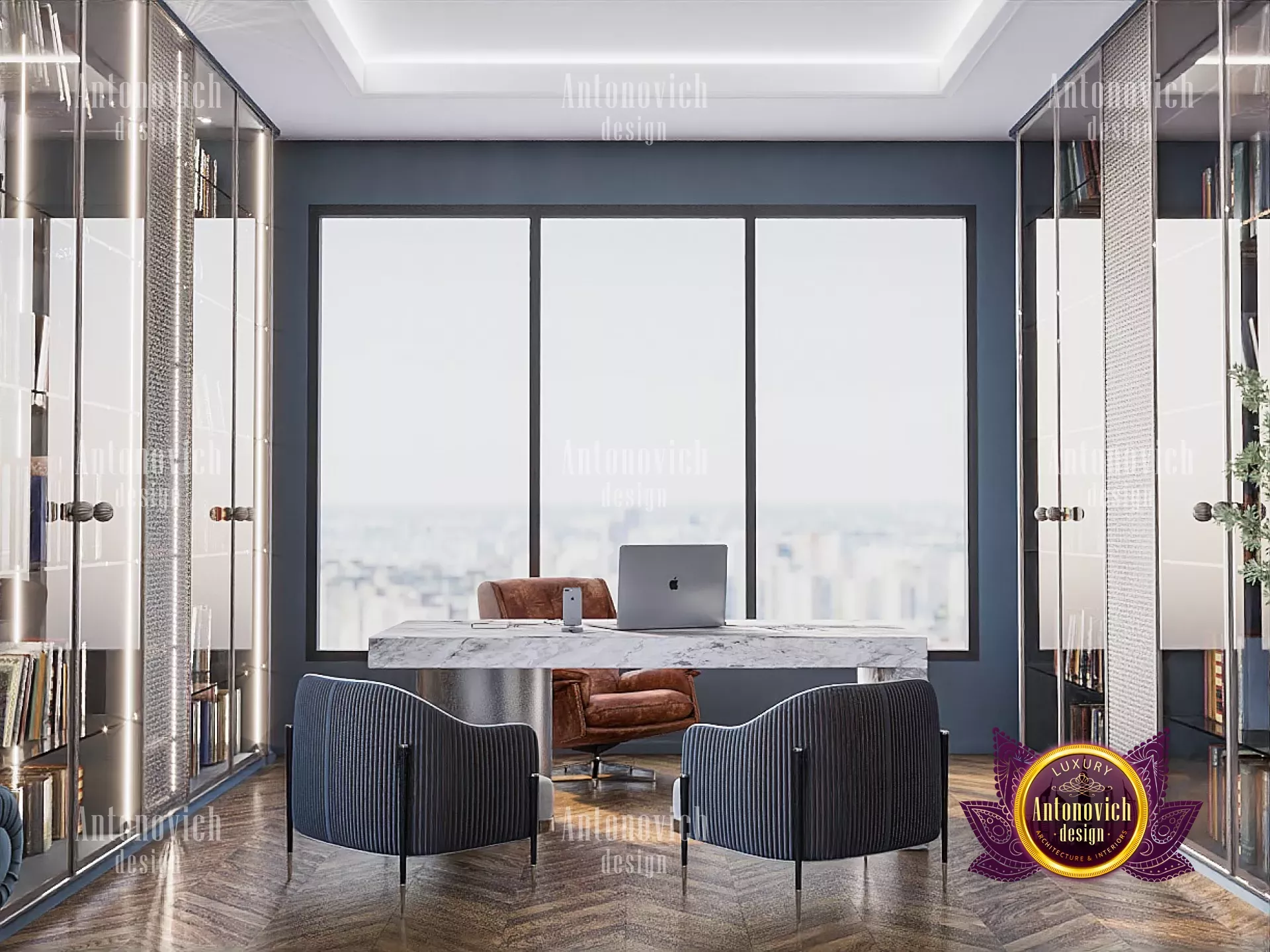 هذا التصميم الداخلي لمكتب منزلي يتسم بتفاصيل رائعة، ألوان داكنة فخمة، وأثاث مُصمم خصيصاً يحوّل الفيلا إلى مظهر جديد يخطف الأنفاس. اطلع على هندسة الفلل الفاخرة لترى كيف تُشكل البناء والتشطيبات المساحات الكبيرة. إنه تصميم مكتب مدير تنفيذي فخم دبي يناسب المساحات الرسمية والراقية. ظلاله الفاخرة من البني الداكن والأسود تكمل تصميم المكتب وتمنحه طابعاً رشيقاً. المساحة بأكملها مناسبة لمكتب مدير تنفيذي فخم دبي. أي شخص يزور هذا المكان سيشعر بالانبهار. العمل هنا لا يشعر بالملل لأن التصميم يوفر كل ما تحتاجه ليوم عملي أكثر فعالية. منطقة الجلوس الكبيرة تستوعب عدداً كبيراً من الضيوف وزملاء العمل؛ ولأفكار تنسيق مناطق الجلوس راجع دليل غرف المعيشة الفاخرة. يتوفر أيضاً شاشة تلفاز كبيرة لعرض العروض التقديمية. السقف العالي والمرتفع يجعل المساحة تبدو أوسع، والإضاءة في هذا التصميم تشكل مزاج الغرفة بشكل مثالي. التخطيط يشمل حلولاً عملية مثل خزائن مكتبية مخصصة ومساحات تنظيم ذكية.