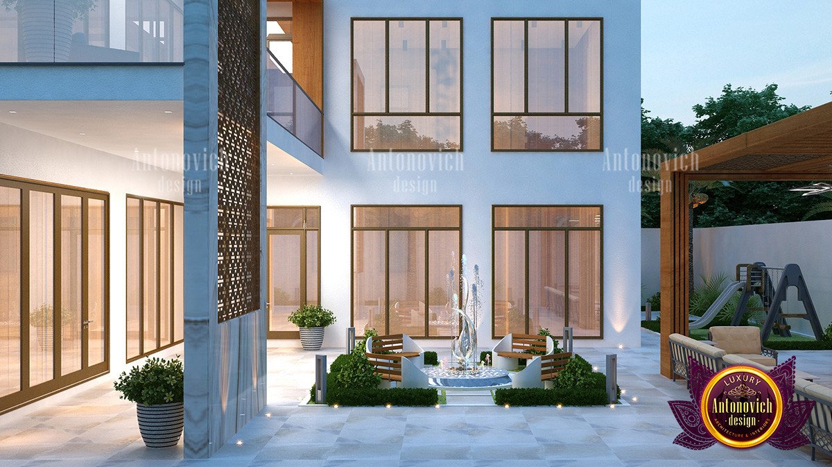 نحافظ على سمعته من خلال معايير تصميم صارمة، حيث يعمل متخصصونا ضمن فرق تصميم عالمية. كما نبتكر تصاميم داخلية متخصصة مثل غرف نوم أطفال فريدة لتلبية الاحتياجات العائلية المختلفة. معظم مصممي ومهندسي أنطونوفيتش ديزاين (Antonovich Design) معتمدون ومؤهلون للعمل على مستوى دولي. هذا التخطيط مثالي للفعاليات الخارجية واللقاءات السريعة. المسبح يذكّر بالمنازل الشاطئية، وتكمل النباتات واللمسات الجانبية المشهد. مكّننا هذا التصميم من الاستمتاع بجو خارجي جذاب وواسع مُريح. يعتبر التصميم الأنيق مهربًا من صخب المدينة؛ البنيات الخارجية رائعة وستستمتع بالبقاء هنا لساعات. المقاعد والبلاط والنوافير وكل التفاصيل مصممة بعناية، مدعومة بخيارات أفضل أثاث معاصر في دبي، ما يمنح المنزل الطابع الفاخر الذي يحتاجه. ستشعر أنك في موقع يتسم بالعظمة والتحكّم بتفاصيله الرفيعة. النوافذ متقنة وأنيقة؛ هذا التصميم الخارجي يبرز قيمة الجودة ويمنحك نوعًا جديدًا من الفخامة بمظهره الدقيق، ويضاهي شعور الإقامة في فندق فاخر بمرونته وراحته.