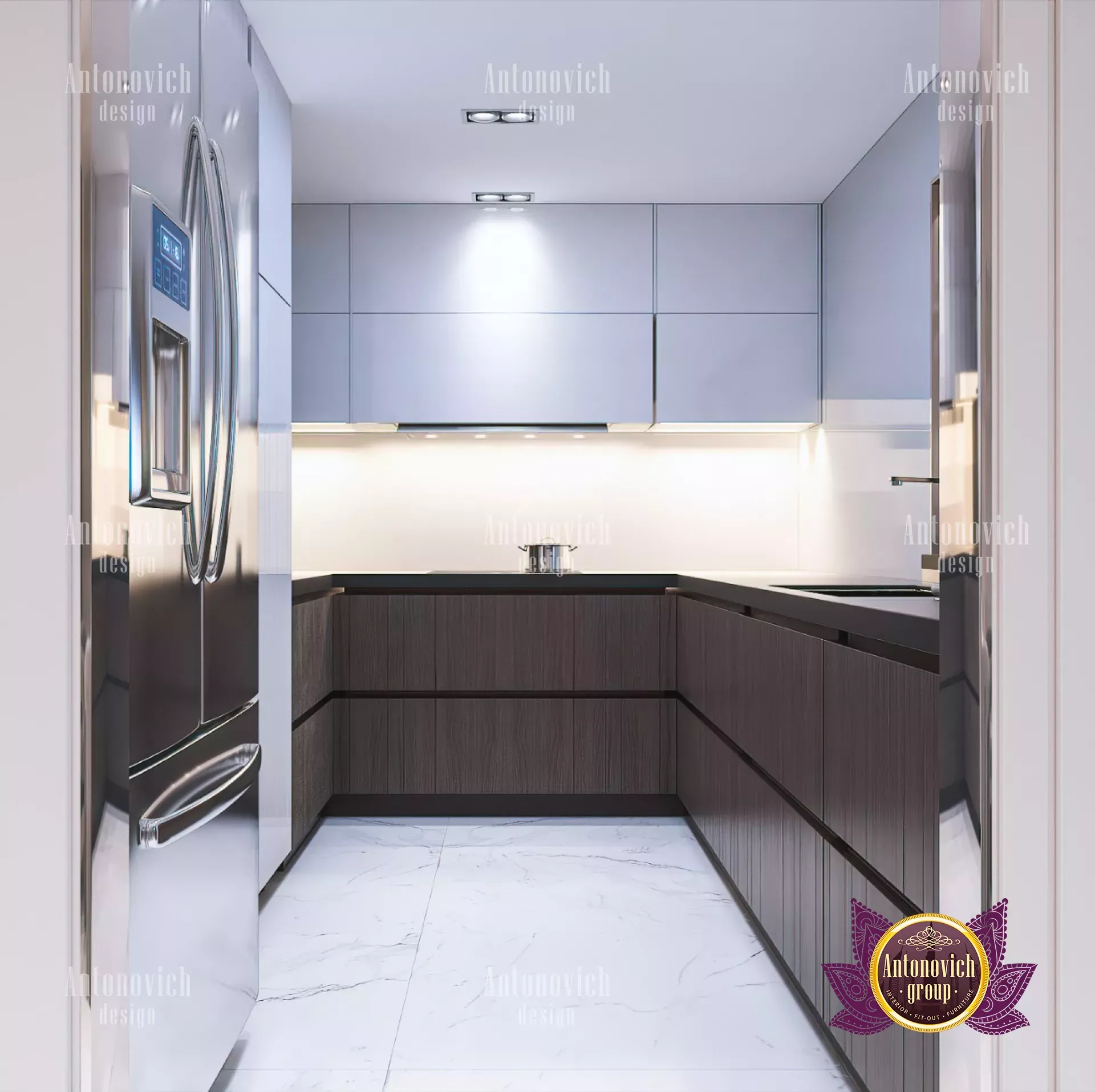 تصل الخزائن الحديثة غالباً حتى السقف لزيادة مساحة التخزين. في بعض تصميمات المطابخ يتم تدرّج ارتفاع الخزائن العلوية لكسر امتداد جدران الخزائن الكبيرة. هناك عناصر بارزة إضافية: