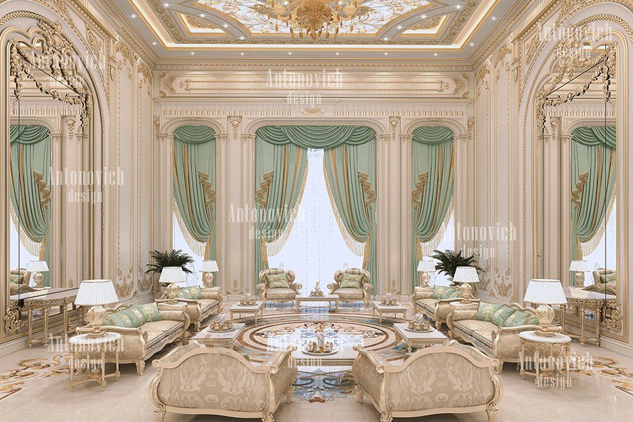 يشمل التصميم الكامل لبيت الرئاسة في الهند، كما في كل تصميم داخلي ملكي للقصور، نوافذ واسعة تتطلب أقمشة تغطية مناسبة مثل ستائر حجب كاملة فاخرة مع تطريزات دقيقة. بصفتها شركة تصميم داخلي دبي الهندية، تحرص أنطونوفيتش ديزاين (Antonovich Design) على اختيار أفضل تصميمات الأثاث وتقديم أساليب حصرية وفريدة عبر أثاث مخصص للقصور الفاخرة مصمم بأرقى القماش والمواد المميزة. وتقدّم أمثلة للمشاريع السكنية مثل فيلا راقية في البراري، كما توفر حلولًا لمكاتب منزلية فاخرة عبر تصميم مكتب منزلي فاخر. كما تعمل الشركة كمكتب تصميم داخلي في المملكة العربية السعودية وتعرض تصاميم منازل رائعة من مناطق أخرى.