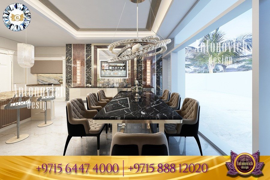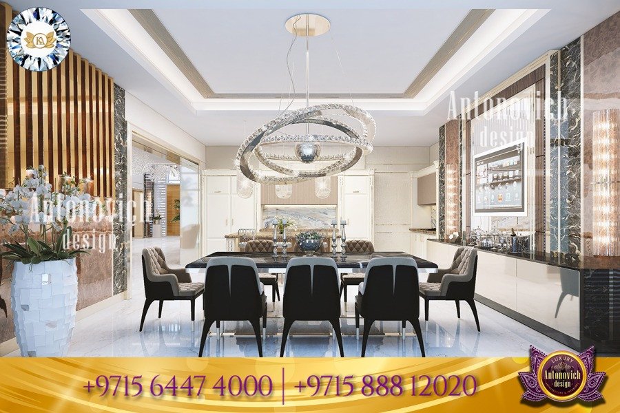 بما أن أنطونوفيتش ديزاين توفر تنفيذات وتصاميم كاملة، فإن تصميم غرفة الطعام الفاخرة يُنجز عملياً من خلال أعمال التنفيذ التي تحول الرسومات والتصورات إلى واقع. كما يقدّم المكتب خدمات تنفيذ تشطيبات غرفة الطعام وإدارة مشروع تشطيب داخلي بمتابعة ميدانية دقيقة. ويشمل ذلك تجهيز متاجر البيع بالتجزئة كمثال لنهجه في التشطيبات، وتُدار المشاريع بإشراف مدراء مشاريع يضمنون التزام مستوى التنفيذ بأعلى المعايير. كما يتعامل الفريق مع مشاريع فيلات كبيرة، بما في ذلك تصميم فيلا داخلي في قطر، ومشروعات أخرى مثل الفلل الفاخرة في العين.