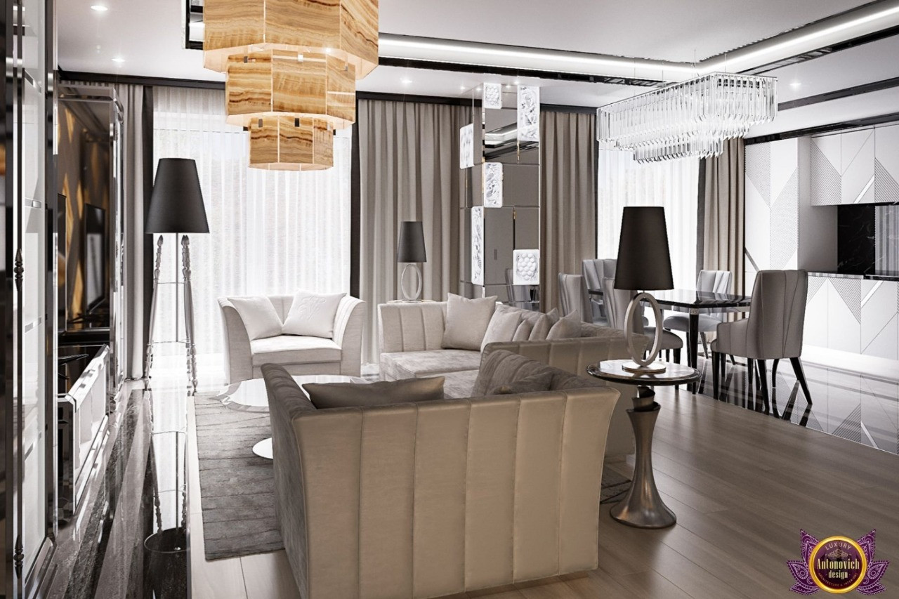 الغرفة المطلة مذهلة، والاستيقاظ داخل تصميم غرفة المعيشة الفاخرة هذا أشبه بتحقيق حلم. العنصر الرئيس في هذه الغرفة هو تصميم الأثاث. الكراسي والطاولات المذهلة في منطقة الطعام فريدة من نوعها، وتفاصيلها وخطوطها الضوئية المستقيمة تضفي رونقاً خاصاً. تضيف ديكور جدران خشبية عمودية لمسة دفء وتناغماً إلى المشهد. الجدران البيضاء النظيفة تزيد من شعور النظافة والفخامة. الأثاث المستخدم متقن وكل تفصيل مُعد ليمنح شعور الرفاهية؛ فتركيبة البني القوية مع لمسات سوداء تخلق أجواء طبيعية راقية. اطلع على تشكيلات الأثاث الفاخرة في دبي لمزيد من الأمثلة. قطع الأثاث المختارة تمنح الغرفة مظهراً مذهلاً من حيث الألوان والبناء. السجاد المصمم بشكل رائع يأتي مع تفاصيل لولبية تضفي مظهراً مجرداً—بنفس الوقت تجد تصاميم سجادة فاخرة لغرفة المعيشة متكاملة مع لوحة الألوان. الطراز البُني العصري عملي وأنيق، بينما الكراسي والطاولات الأساسية تُحافظ على بساطتها بلون أبيض. النقوش الحائطية تبرز كعنصر رئيسي في غرفة معيشة بتصميم أنيق، وتستمر أنماط التصميم على الجدران والديكور مما يعزز المظهر الفاخر. الغرفة مجهزة بكل ما تحتاجه؛ إنها غرفة معيشة عصرية وفاخرة. للاطلاع على أفكار صالة فاخرة في الإمارات راجع أمثلة إقليمية مثل أفكار غرفة المعيشة في سان فرانسيسكو. وللحصول على تصميم داخلي مودرن معاصر لغرف النوم اقرأ تصميم الغرف الداخلية الحلمية، ولحلول مودرن للفلل اطلع على حلول مودرن لفلل فاخرة.