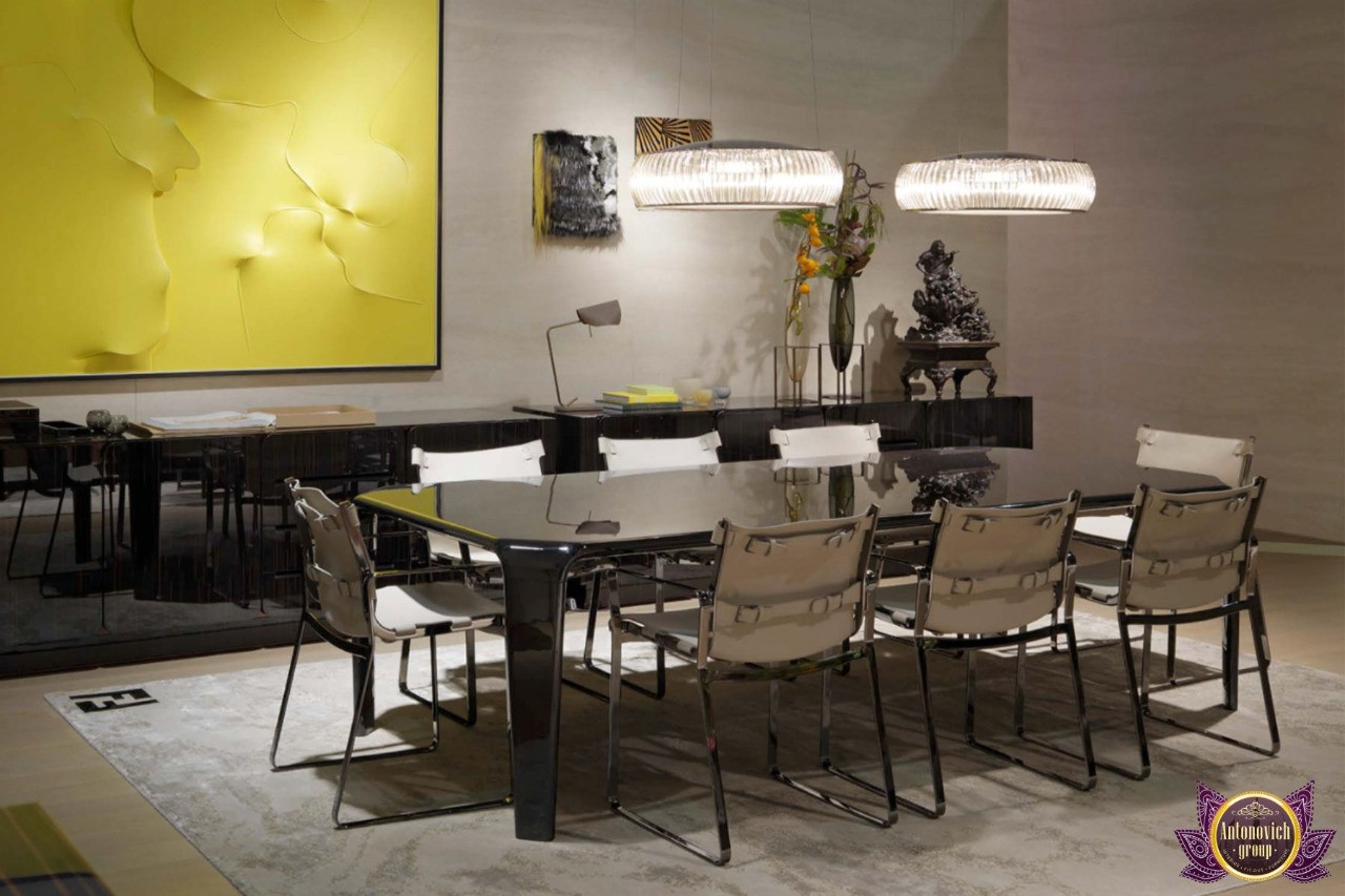 اختر قطعة مميزة من مجموعة أنطونوفيتش (Antonovich Group) أو أثاث FENDI Casa؛ سجادة ملونة جريئة أو رف كتب مطلي بلون قوي سيصرف النظر عن نقاط الضعف في الشقة. قد تكون أفكار جدار بارز للشقق دبي قطعة بيان قوية أيضاً. لا تنسَ أن الاختيار الذكي للأثاث يمكنه تحويل المشهد—ابحث عن أثاث فاخر لغرفة المعيشة دبي ليكون محط الاهتمام دون إثقال المساحة. يمكنك أيضاً اكتشاف أثاث فرنسي فاخر لتفاصيل كلاسيكية أنيقة.