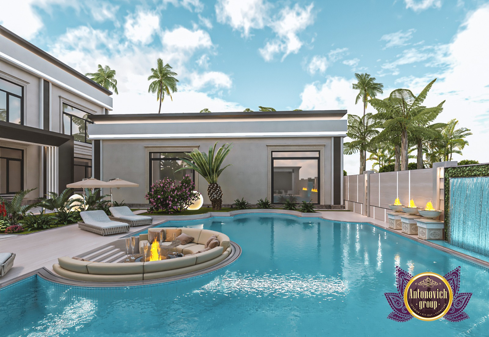 بفضل جمالها، تنبض المساحات بالحياة، خصوصاً عند الدمج مع تصاميم أثاث داكنة واختيار أفضل تصميم لمجموعة الأثاث. يساهم تصميمنا في تقليل الفوضى. ومع مخطط منزل أنيق، يتم دمج تصميم مسبح حديث للفيلا بأناقة ومراعاة ويتناسق مع تصميم شقق مودرن هادئ وفاخر. هذه التركيبة عالية التباين تأخذ التصميم إلى مستوى جديد. أنت تستحق مسبحاً يجمع بين الفخامة والهدوء، ويمكن أن يمنحك تنفيذ تأثيث داخلي للفيلا تجربة استرخاء متكاملة طوال اليوم. وللعقارات الفاخرة يمكن إبراز الهوية عبر تصميم لوجو مذهل.