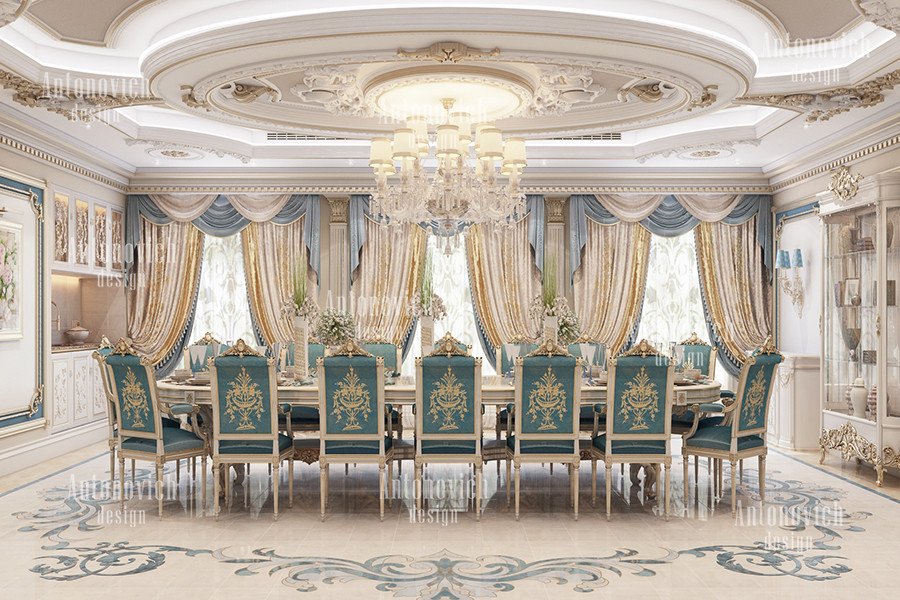 في كل تصميم منزل ملكي في الهند تتسم المساحات بالاتساع والتوازن نحو المناطق الكاملة. ألقِ نظرة على هذه المنطقة الداخلية لغرفة الطعام التي صُممت خصيصاً لإعداد ديكور غرفة طعام فاخرة بطابع ملكي أنيق. أفكار تجهيز لغرفة الطعام تساعد على اختيار الخامات والإضاءة الملائمة لهذا الطابع. من الضروري تنفيذ تصميم سقف بديكور مميز مع نقوش جبسية دقيقة ولمسات ذهبية. كما أن اختيار ثريا وإضاءة مناسبة أمر أساسي لتحقيق المزج المثالي بين السطوع والدفء في المكان — من غرفة الطعام إلى تصميم مكتب منزلي أنيق. ونقدّم أيضاً حلول تجهيز المكاتب متكاملة للمساحات المهنية والمنزلية.