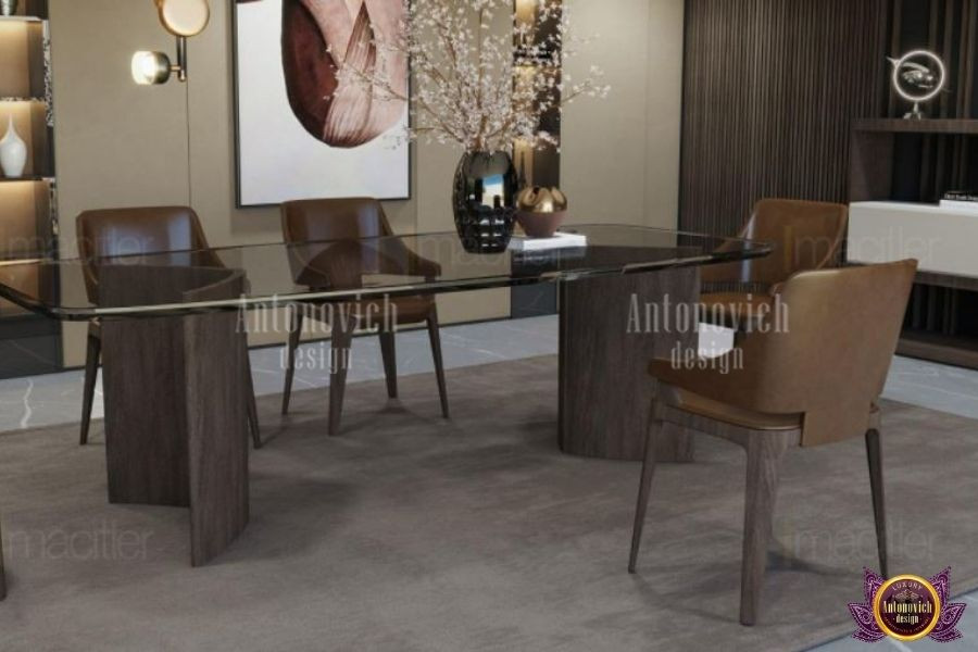 توفّر أنطونوفيتش ديزاين (Antonovich Design) الفاخرة، شركة هندسة معمارية في دبي، خدمات متكاملة لتأثيث المنازل في دبي، بما في ذلك تأثيث غرفة طعام في دبي وأثاث غرفة الطعام المتكامل. غرفة الطعام واحدة من أهم المساحات في أي منزل، ولذا تحظى بنطاق تصميم داخلي واسع. منطقة الطعام هي حيث تجتمع العائلة في جلسات حميمية وتُستقبل الضيوف لتناول الطعام ومشاركة الأوقات، لذلك يُعطى تصميم هذه المساحة أهمية تمثل نمط حياة المالك وشخصيته. مهمة مصمم الديكور الداخلي في ترتيب غرفة طعام فاخرة تتطلب دقة عالية، من تصور التصميم وصولاً إلى اختيار أفضل الأثاث والتنسيق النهائي. تشمل محفظة أعمالنا أيضاً تنفيذ متجر مجوهرات. كما تستعرض محفظتنا مشاريع متنوعة وتعرّف الزوار على الشركة الرائدة للتصميم الداخلي، ونشرنا مواداً عن أفضل ٥ شركات التصميم الداخلي إلى جانب أفكار تصميم خارجي ملكي.