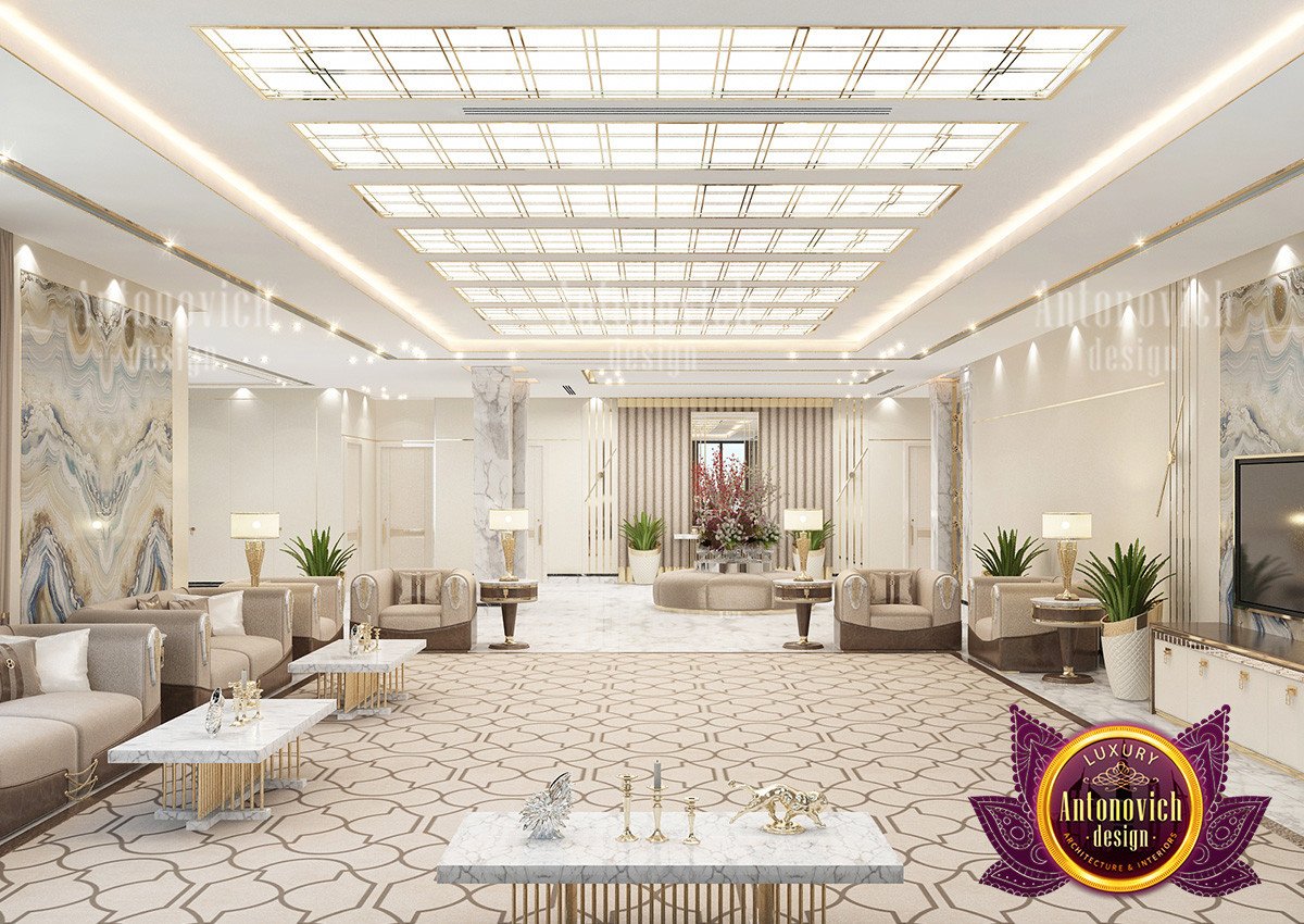 جدران هذه الصالة أنيقة للغاية. أضفنا لمسة فنية ممتازة لتمنح الجدران البسيطة عمقًا. كما أن الستائر تتميز ببساطة فريدة. ستحب السقف الخشبي في هذه الصالة؛ يضيف المصباح المستطيل جوًا مختلفًا للغرفة. تصميمه الجميل بتفاصيل متناسقة رائع للمشاهدة. هذا سيضيف موضوعًا جميلاً لمكانك. للمشروعات الأضخم، اطلع على أمثلة تصميم داخلي للقصر، واطلع أيضًا على تنفيذ وتجهيز المناظر الطبيعية في فلل 22 قيراط في نخلة جميرا. تلعب الإضاءة دورًا كبيرًا في التصاميم الداخلية للصالات. يعرف أنطونوفيتش ديزاين مدى أهمية خلق حلول إضاءة جميلة، خاصة في الصالات. لقد أنشأنا أفضل ترتيب للإضاءة في هذه الصالة. نعلم أن الصالات تتطلب مساحات فارغة كبيرة، ولهذا السبب من أجل الحصول على صالة مبهرة، يجب استغلال إضاءة الصالة الداخلية بشكل جيد. كل مصباح وثريا مهمان لأنهما يعززان شخصية التصميم الداخلي والديكور. هذه العناصر أساسية لتحقيق حلمك في تصميم صالة فاخرة. تتكامل الستائر مع تصميم السقف؛ ستائر وسقف الصالة هنا بسيطة وأنيقة. يوضح المشروع تصميم صالة واسعة يراعي التناسق والمساحة.