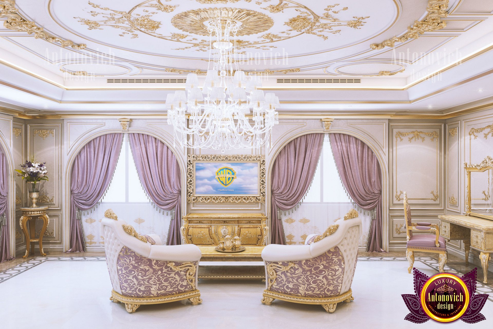 نغمات الباستيل الكريمية الهادئة تغمرنا بسكونها، وتضيف الدرجات البنفسجية المتباينة لمسة مبهجة على المشهد البصري. كل عنصر هنا يساهم في هدوء ملكي مريح وأمسيات هادئة، ومحادثات عائلية لطيفة، وتحضيرات للخروج الاجتماعي. التماسك اللوني والنَفَس الواحد يبرز في التصميم: تصميم داخلي بألوان هادئة ودافئة بشكل عام، مع ستائر بنفسجية وسجادة يدوية الصنع وقطع ديكور تضيف لمسة انتعاش وبرودة خفيفة. لإرشاد عملي حول الألوان، راجع إتقان لوحة ألوان التصميم الداخلي.