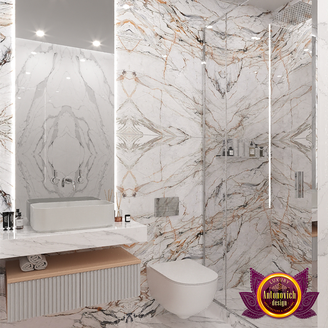 هل تبدو حماماتك في دبي مملة وتفتقر إلى شخصية؟ لا تهمِل أصغر غرفة في منزلك. ولإلهام أكبر لمساحات كاملة، راجع تصميم فيلا أنيق ودافئ. يمكن تحويل المساحة الصغيرة إلى تصميم حمام فاخر يعكس ذوقك العملي والفخم. إن التصميم الداخلي لهذا الحمام العصري أنيق، بجدران رخامية ذات درجتين لون تضيف ملمساً مميزاً إلى تصميم داخلي للغرفة. للاطلاع على أفكار ذات صلة، راجع أفكار تصميم غرفة نوم فاخرة. كما اطّلع على افضل الاثاث المختار لغرف النوم. يضيف ديكور الحمام ديكور حمامات دبي سحراً إلى تصميم حمام فاخر. المساحة مريحة ومرتبة وتتمتع بوضعية ذكية. كثيراً ما يُتجاهَل الحمام، ويُترك بسيطاً. هذا التصميم يوفر أجواءً راقية تتناغم مع منزل مترف.