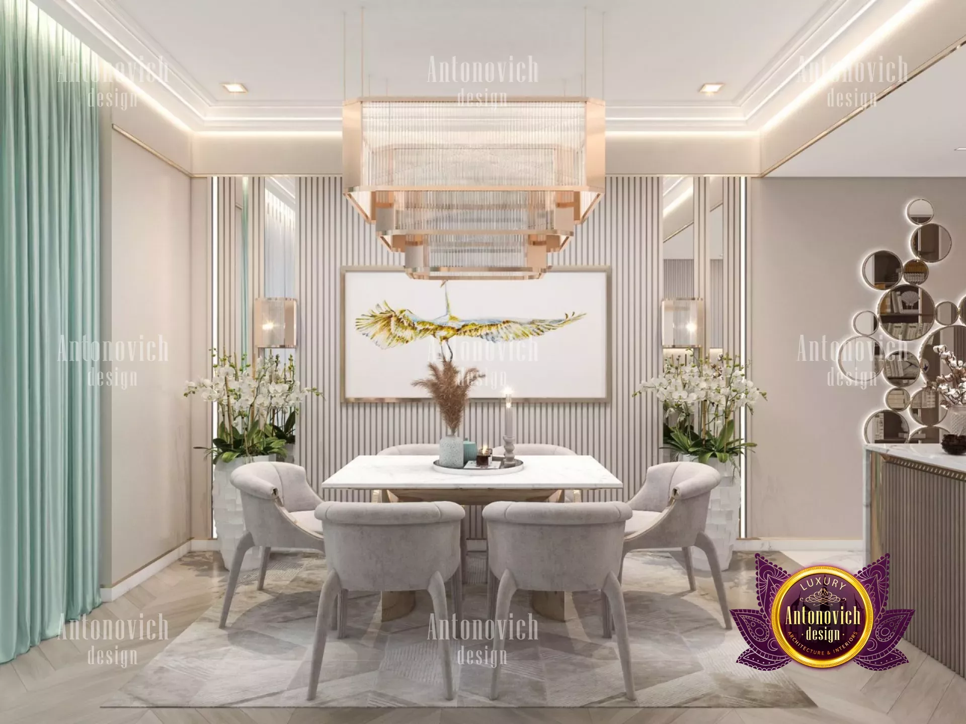 تصاميم غرفة الطعام نقطة محورية لتجمّع العائلة والاحتفال بالمناسبات. نقضي وقتاً طويلاً ونجري محادثات مهمّة على المائدة، لذلك يجب أن تكون مميزة ومريحة وأنيقة وعصرية. ديكور غرفة الطعام المودرن بالألوان الدافئة يضفي دفءً ويوازن بين الطبيعة والإحساس الجذّاب لهذه الألوان. مساحة طعام فاخرة مخصصة ستعزّز من جاذبية تصميم غرفة الطعام الفاخرة دبي.