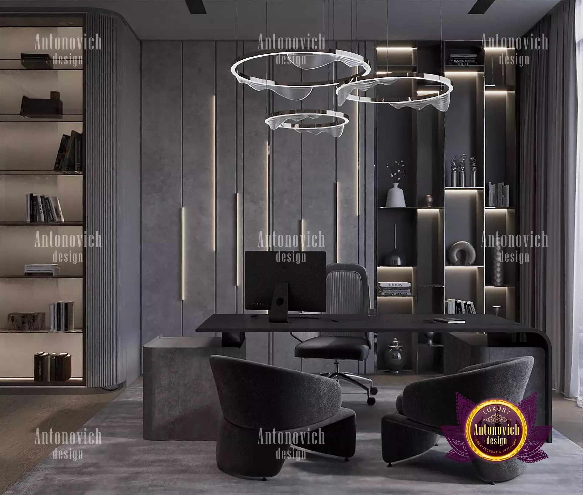 الأثاث الرائع في تصميم مكتب منزلي فاخر يضيف إلى التحفة الكاملة لديكور المكتب المنزلي. الكرسي بدرجة كريم جميل يتناغم مع بقية عناصر ديكور مكتب منزلي فاخر. الطاولة ومقاعد الضيوف مصممة ببراعة، ما يعزز جو الهدوء في المكان. بسبب الجائحة، بات كثيرون يبحثون عن مكتب منزلي؛ يمكننا جعله أكثر روعة عبر تطوير تصميم مكتب منزلي فاخر لك مع أنطونوفيتش ديزاين (Antonovich Design). نحن ننفذ مشاريع خارج الإمارات أيضاً؛ اطلع على أعمالنا في السعودية. ولأفكار عالمية راجع ديكور منازل لوس أنجلوس. الميزات الفاخرة واضحة في المواد المستخدمة داخل تصميم مكتب منزلي فاخر، كما في الصور أعلاه. كما نستخدم هياكل الألمنيوم عالية الجودة في العناصر المعدنية. المزج بين البني الفاتح والنغمات الأعمق يخلق أجواء هادئة ومريحة. يمكنك أيضاً مراجعة تصاميم الممرات الفسيحة في دبي لأفكار ذات صلة. ولأفكار حول المدخل، تفقد تصميم المدخل. الألوان احترافية، والتفاصيل الجميلة تدفعك للعمل طويلاً في هذا تصميم مكتب منزلي فاخر. لرفع الإنتاجية يُنصح بإعداد كمبيوتر أنيق ومنظم. لتوفير راحة وسهولة، صُمِّم أثاث مريح. طريقة بسيطة للوصول إلى رف أو خزانة تساعدك في استعادة أغراضك دون تشتت. للتخطيط العام راجع مخططات الممر وغرفة المعيشة. أيام العمل من المنزل تصبح أسهل بتصميم منزلي مدروس ومتكامل.