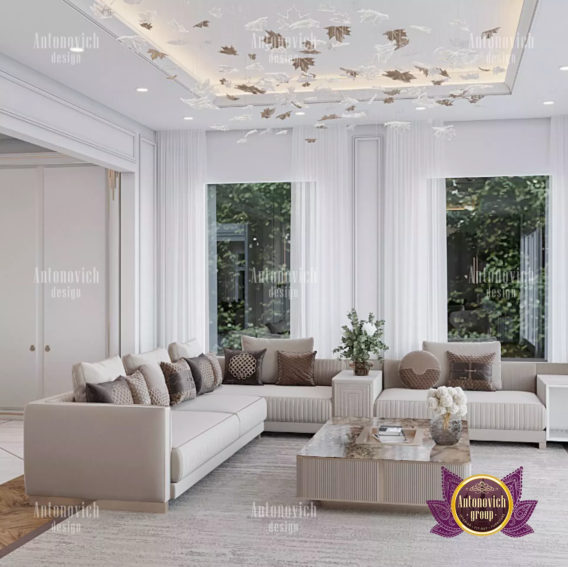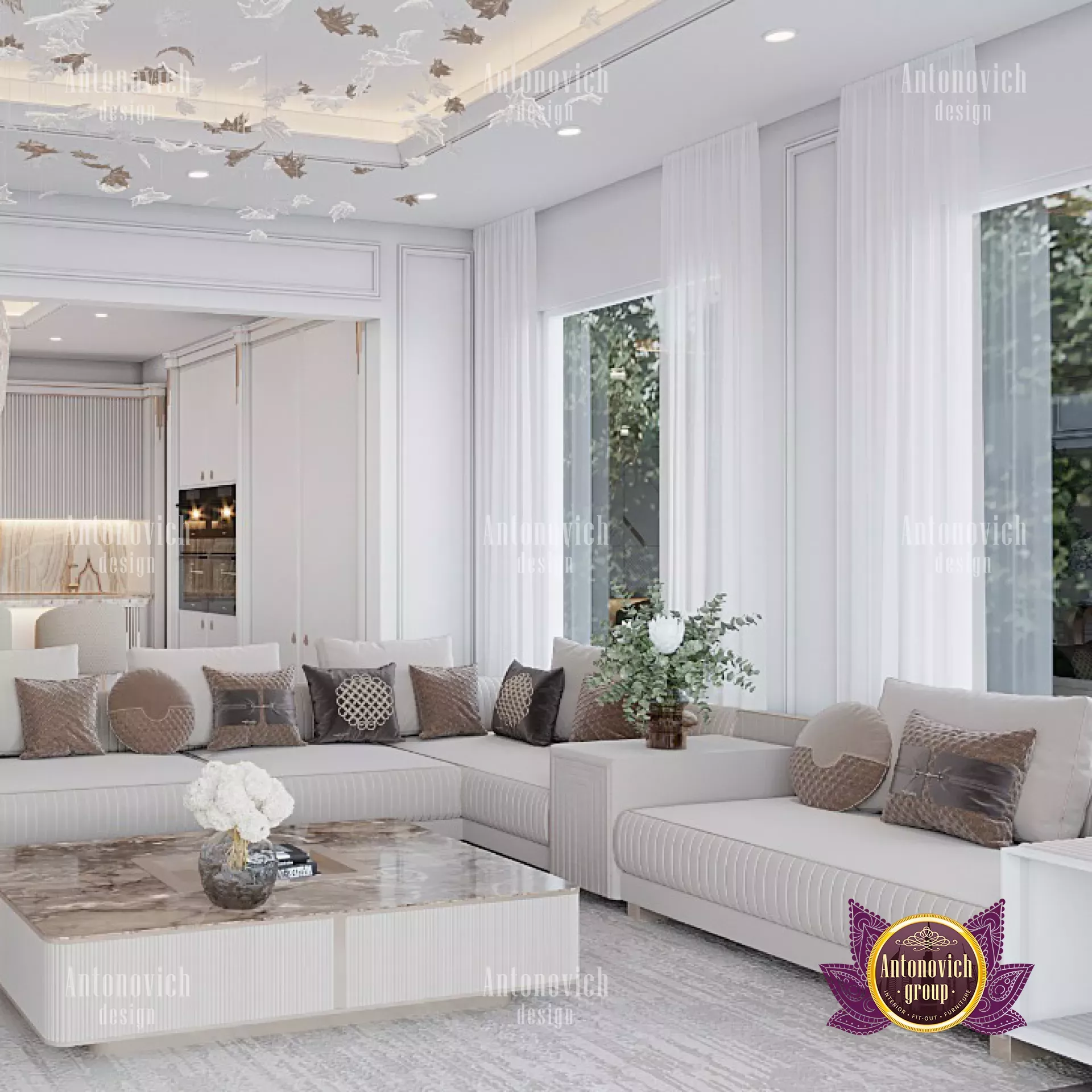مساحة المعيشة الترحيبية لأنطونوفيتش ديزاين (Antonovich Design) فريدة من نوعها، بتصاميم راقية وتنسيقات معاصرة متقنة. إذا كنت تبحث عن أفكار أو تريد إعادة تنسيق غرفة المعيشة لتجعلها أكثر راحة وفخامة، فأنت في المكان الصحيح. هذا التصميم الداخلي لغرفة المعيشة في دبي مستوحًى من جمال أنيق وذو طابع راقٍ. ترتيب غرفة المعيشة المصمم بكفاءة ومساحة مريحة صُمم لمنحك أفضل تجربة معيشة ممكنة. غرفة المعيشة مرحبة ومصممة لاستقبال لقاءات الأهل والأصدقاء. يمكنك استلهام عناصر الضيافة من أفضل الفنادق في العالم. تصاميم الأثاث المبتكرة صُممت خصيصًا لغرفة المعيشة الفاخرة بواسطة شركة تصميم الأثاث المناسبة أثاث فاخر محلي.