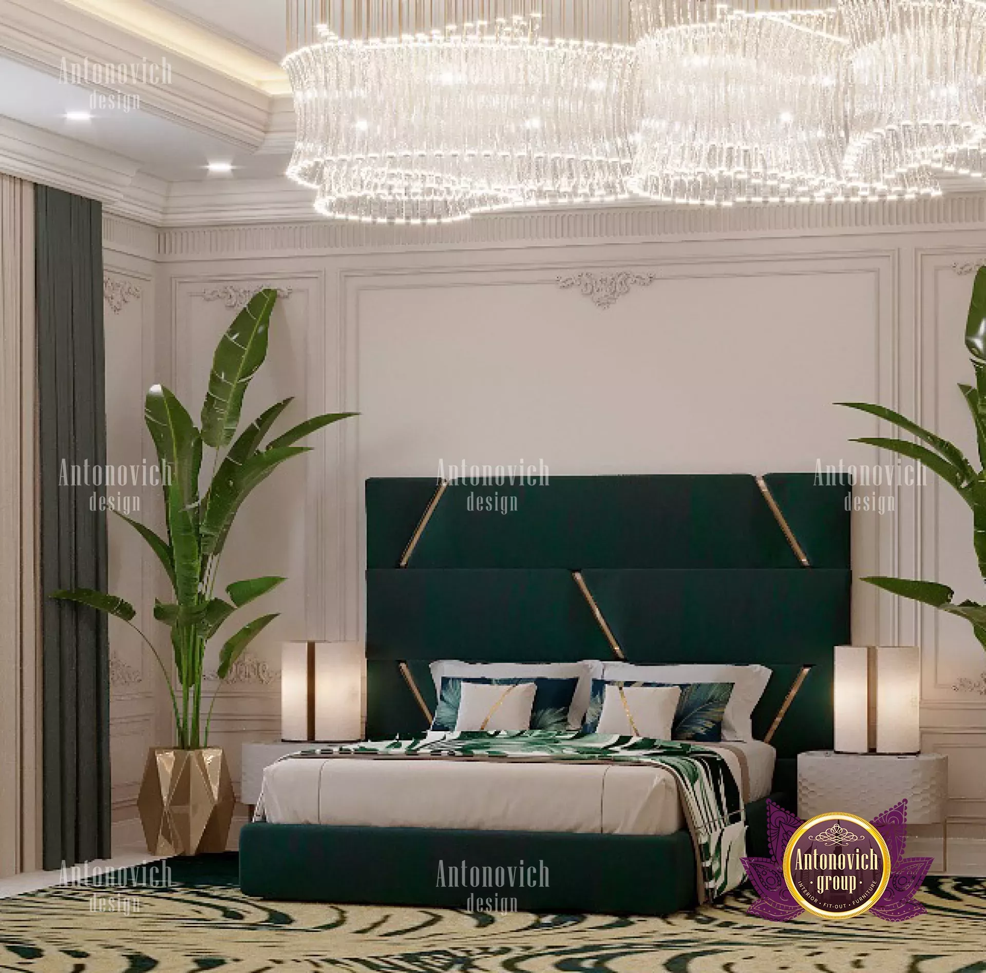 الملمس يلعب دوراً أساسياً عبر تنسيق المواد الفاخرة في الغرفة مثل الجلد والمعدن والخشب والمخمل والريش. هذه التركيبات تصنع إحساساً غنيّاً ومتناغماً في المساحة. تطبيقات مشابهة تظهر في فيلا بدبي هيلز.