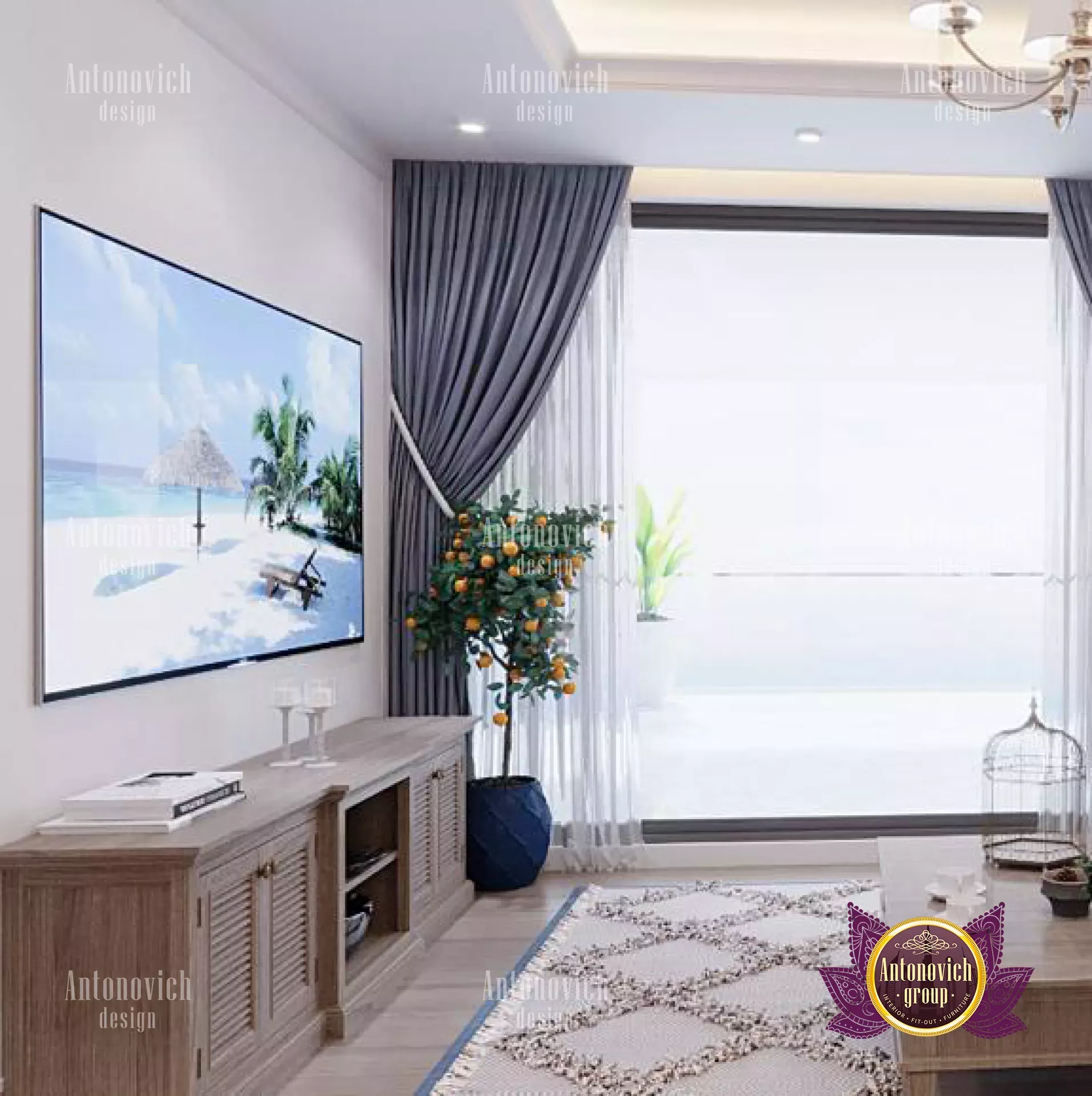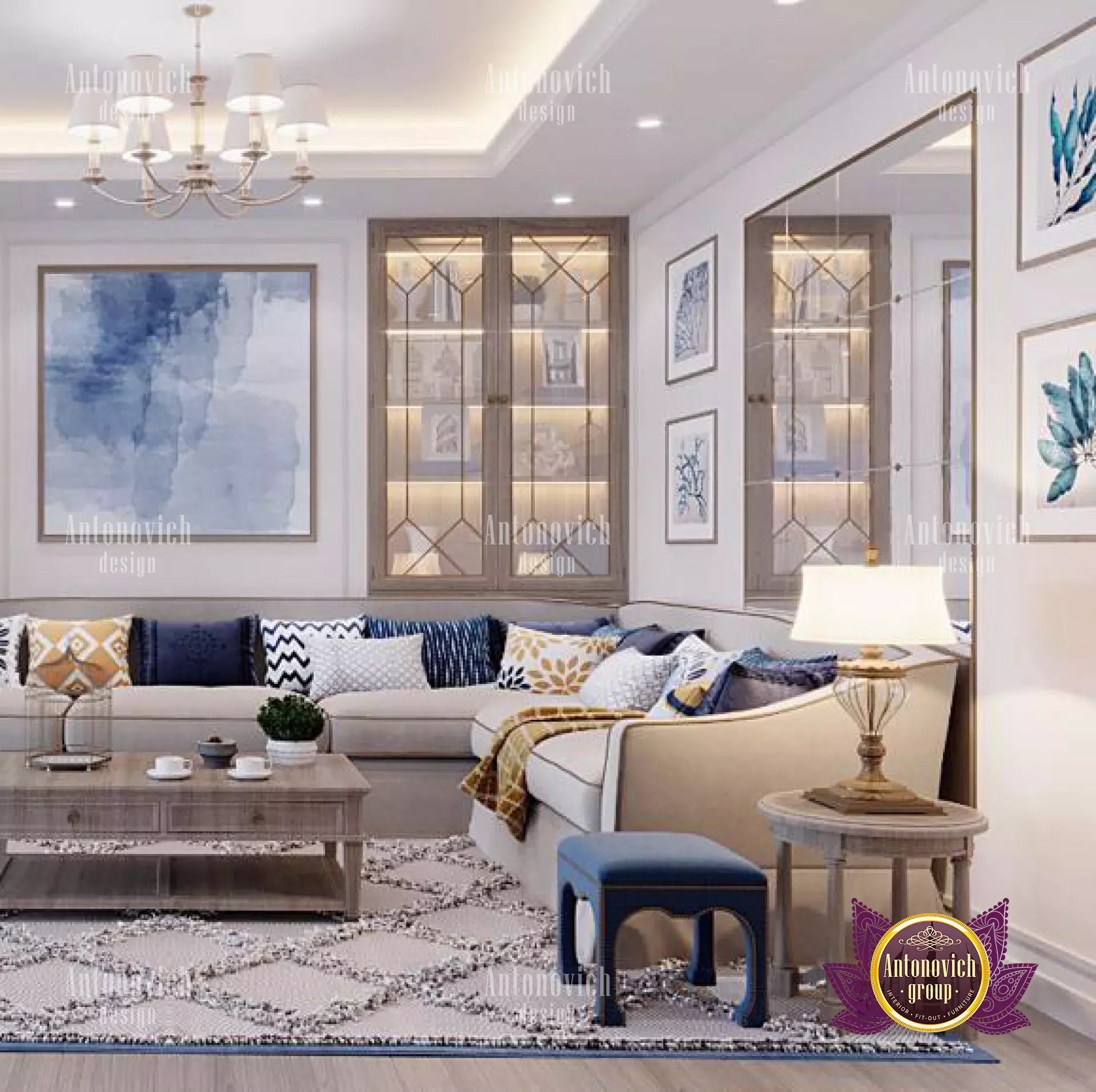 المساحة الدافئة مُصمَّمة لاستقبال التجمعات الاجتماعية من الأصدقاء والعائلة. يركز ديكور غرفة المعيشة الفاخر على قطع أثاث مخصَّصة بتصاميم راقية، في حين تمنح الستائر الأنيقة توازناً مثالياً مع الأريكة البسيطة. التناسق بين الألوان يجعل هذا التصميم مثالياً إذا كنت تبحث عن تصميم غرفة المعيشة الفاخرة في دبي. الطاولة الذهبية الأنيقة جزء من التصميم الباذخ الذي يضفي شعوراً مترفاً، مع ترتيب أثاث غرفة المعيشة الفاخرة الذي يحافظ على انسيابية المساحة ويمنع الإزدحام البصري. ولجلوس رسمي واستقبال الضيوف يمكنك الاطلاع على أفكار مجالس فاخرة لتطبيقات عملية.