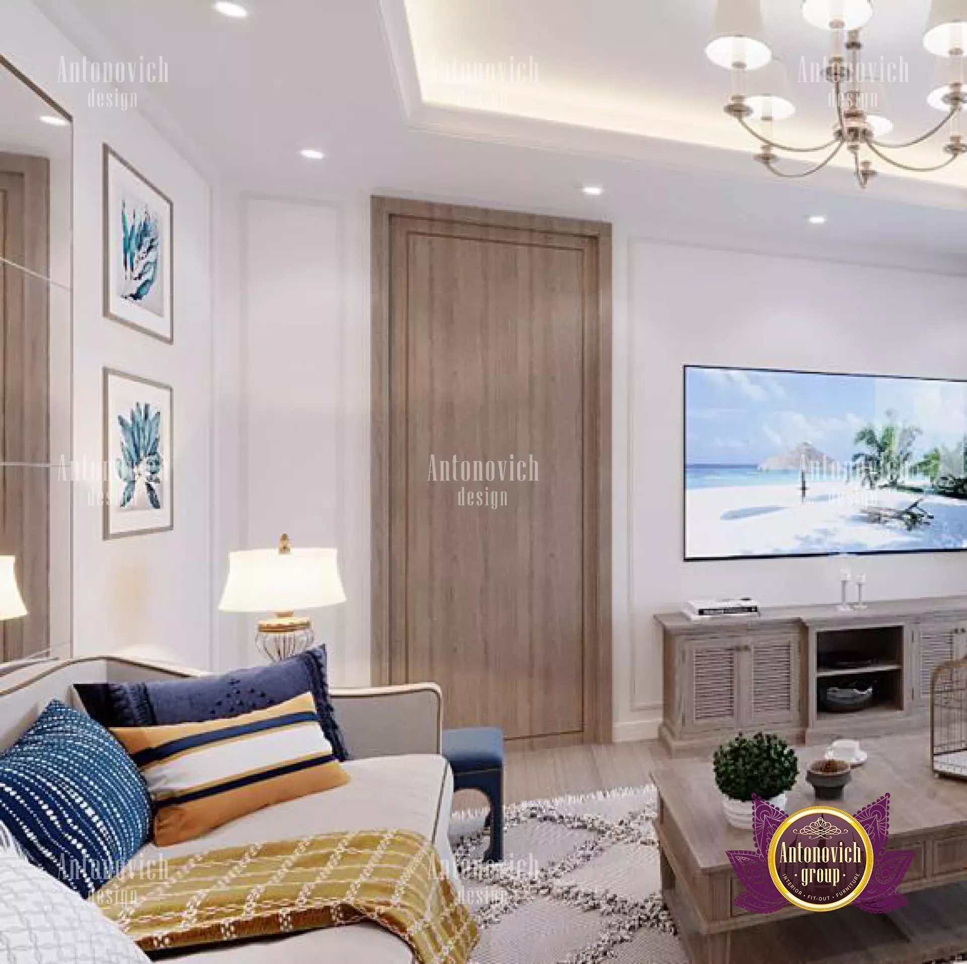 تُظهر هذه المساحة الدافئة في Port De La Mer جميرا دبي تصميم غرفة المعيشة الفاخرة من أنطونوفيتش جروب (Antonovich Group)، أحد أبرز مصممي الديكور الداخلي في دبي. إذا كنتَ تبحث عن أفكار تصميم غرفة المعيشة أو ترغب في إعادة تصميم غرفة المعيشة لديك لجعلها مريحة وفاخرة، فأنت في المكان المناسب. هذا التصميم المبتكر والجذاب تصميم داخلي غرفة معيشة دبي مستوحى من جمال راقٍ ومعاصر. وللمزيد من نماذج الرفاهية في دبي راجع شقق JBR دبي. ولتقديم أفضل تجربة ممكنة لغرفة المعيشة، تم اعتماد مخطط عملي وجميل يراعي كفاءة المساحة.
