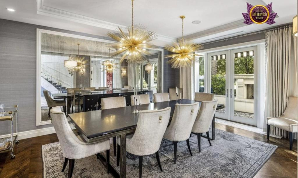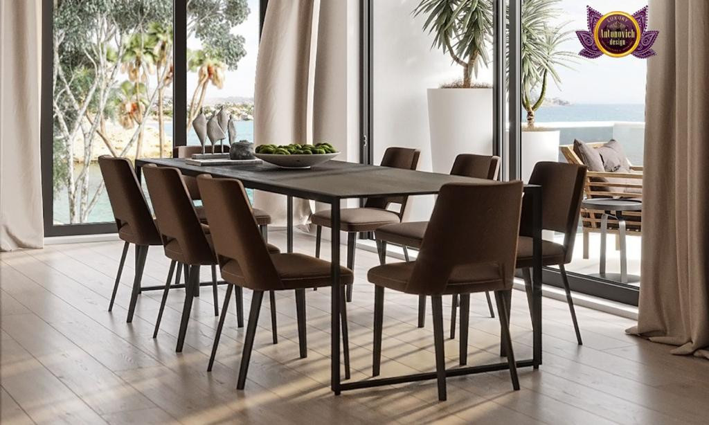 أصبحت غرفة الطعام في دبي اليوم فضاءً رئيسياً للتواصل الاجتماعي. تصميم غرفة الطعام في دبي يجب أن يغذي الأحاديث ويثير الشهية، سواء كانت الأسرة تتشارك وقتها في أمسيات الدراسة أو يجتمع الأصدقاء حول مأكولات راقية ونقاش ممتع. ومع ازدياد أهميّة تناول الطعام كحدث اجتماعي، تحولت غرفة الطعام إلى أهم غرفة في المنزل. كن مبدعًا ولا تخشَ التفكير بعمق في كيفية ابتكار أفضل مساحة لتقديم كل لحظات السعادة القادمة من المطبخ. طاولة طعام كبيرة في وسط الغرفة تُرسل رسالة يومية تجمع الأفراد ذوي الاهتمامات المشتركة. ولإلهام استقبال الضيوف وتصميم جلسات رسمية، اطلع على تصميم جميل للمجلس.