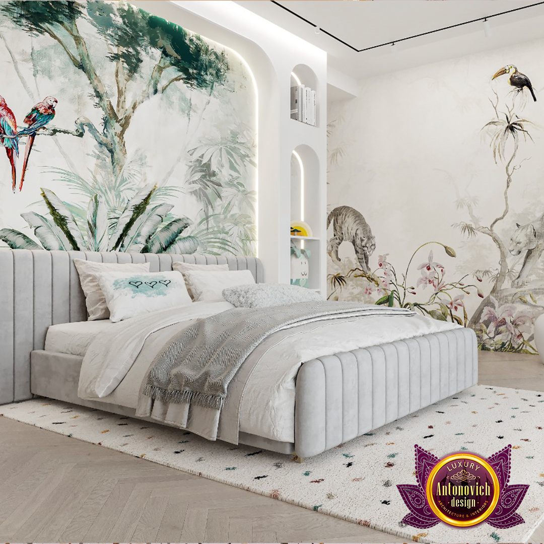 هذا المشروع يظهر بوضوح تصميم غرفة نوم استوائية، ويعكس تصميم داخلي غرفة نوم رئيسية فاخرة مع أثاث فاخر لغرفة النوم الرئيسية وإضاءة غرفة نوم فاخرة. تم دمج تصميم غرفة نوم بعناصر استوائية ولون ديكور غرفة نوم خضراء وبيضاء لإضفاء طابع فريد. كما أنه مثال على تصميم غرفة نوم استوائية في دبي وغرفة نوم ماستر فاخرة في دبي.