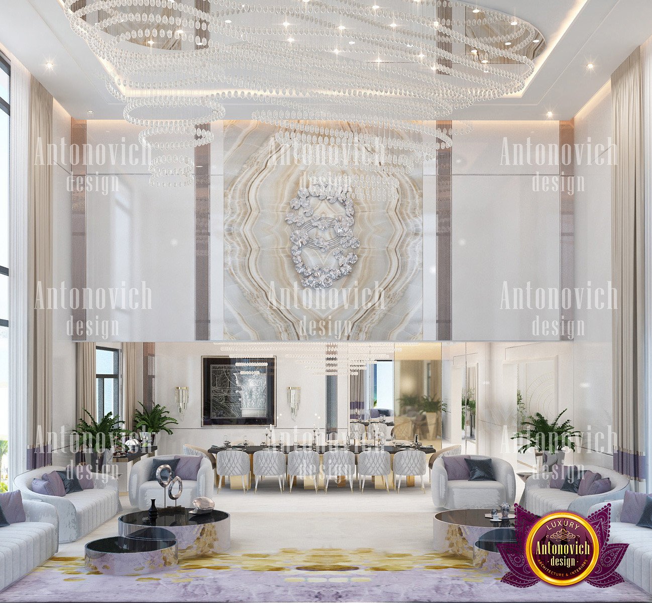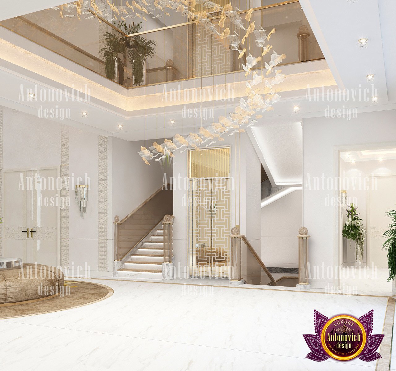 لموازنة الطابع الأبيض الكامل، اختارت أنطونوفيتش ديزاين لمسات تشطيب ذهبية وإكسسوارات سوبها التي تمنح مظهراً أنعم من الفولاذ المقسى أو الكروم. العنصر الفاخر الواضح في الصالة الرئيسية شمل جدراناً ذات تفاصيل متقنة تخلق تصميم داخلي في دبي لصالون به رونق خاص، سواء كان فضاءً خاصاً يطل على أفق المدينة أو غرفة تواجه حديقة منزلية خلابة. كان ذلك نتيجة تعاون كامل مع الأسرة، حيث أخذ المصممون المحليون بعين الاعتبار كل رغبات أفراد العائلة ورؤيتهم لتوقيت النمو المستقبلي، فتجنبوا عناصر قد تتقادَم مع الزمن وحافظوا على أسلوب خالد يناسب ذوقهم. كما خطط الفريق غرفاً عملية مثل غرفة تبديل ملابس بإضاءة نافذة، واستلهموا من مساحات الضيافة الثقافية مثل تصميم مجلس حسب التقاليد كمراجع للتصميم. وللمزيد من الإلهام اطلع على أفكار لديكور المجلس.