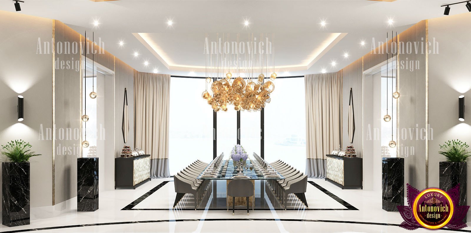 التصاميم الداخلية الفاخرة من أنطونوفيتش ديزاين (Antonovich Design) مخصصة لأشخاص يختارون شققًا راقية أو قرى سكنية فخمة للحياة. لذلك، عادةً ما يرتبط التصميم الداخلي الباهظ بمنازل كبيرة (أو حتى ضياع وسكن رئاسي كامل) وشقق مدينة فسيحة—شقق مكونة من مستويين واستوديوهات رحبة. اطلع على مخطط منزل فاخر في السودان لأمثلة مقياسية ونهج تنفيذية توضح كيفية صياغة تصميم داخلي فخم لمساحات واسعة. كما تناسب هذه المساحات غرفة المعيشة ذات السقوف العالية وتستوعب عناصر فاخرة، وحتى أحواض سباحة خارجية فاخرة في المخطط الخارجي.