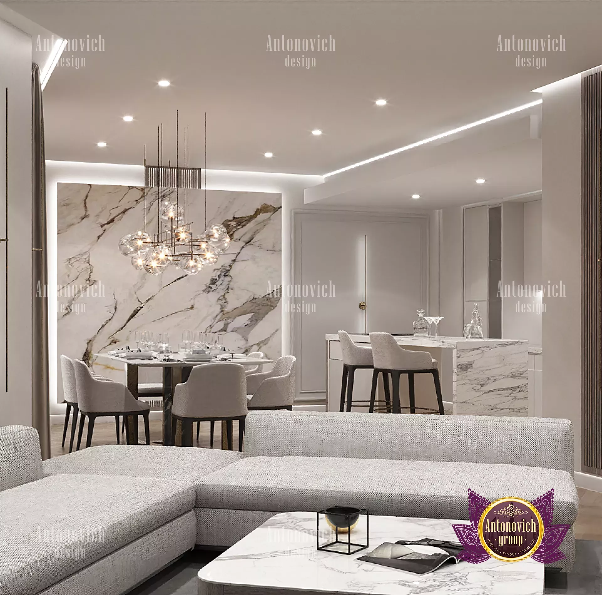 قد تناسبك هذه الشقة العصرية تماماً! تصميم الغرفة البسيط يبدو سريالياً وخارجاً عن المألوف؛ فخم وأنيق ورفيع. جدرانها النظيفة واللمسات الرمادية الأنيقة تتناغم مع قطع الأثاث الفخمة. وللتكامل في المساحة الرطبة، نطبق حلولاً متقنة في التصميم الداخلي للحمام العصري. الطابع العام للمسكن يعكس ذوق شاب متأنق. نُقدّم أيضاً مشورة حول تصميم مطبخ بتدفق حركة جيد دبي لجعل الشقق الصغيرة والكبيرة تعمل بسلاسة. أناقة التفاصيل وروعتها لا مثيل لها. ستلاحظ العناية بالتفاصيل المصممة لأرقى الأذواق من الأرض إلى السقف. المواد الراقية المستخدمة تناسب الأكثر فخامة وحصرية. التصميم الداخلي الفخم تتم إبرازه عبر إضاءة متقنة. إذا كنت تبحث عن مساعدة تصميم تبرز شقتك، فبإمكان فريقنا مساعدتك في خلق تصميم شقق في دبي الحلم. وللاختيار السليم للأثاث، اطلع على الدليل الشامل لشراء الأثاث. سواء كان منزلك المستقبلي كبيراً أو صغيراً، نستطيع العمل معك لبناء أبهى تصميم داخلي للشقة. الأثرياء غالباً ما يختارون الألوان المحايدة كقاعدة. هذا شرط لأي منزل مفروش بفخامة. في هذا تصميم داخلي للشقق استُخدمت ألوان فاخرة لتقديم نتائج مميزة وتصميم داخلي عصري للشقق في الإمارات. خطوط السقف واللمسات الجدارية تعزّز المظهر العام للشقة. حامل التلفزيون من الرخام الأسود يضيف إلى فخامة المكان. تم مزج الأناقة مع نقوش فخمة للحصول على المظهر المرغوب.