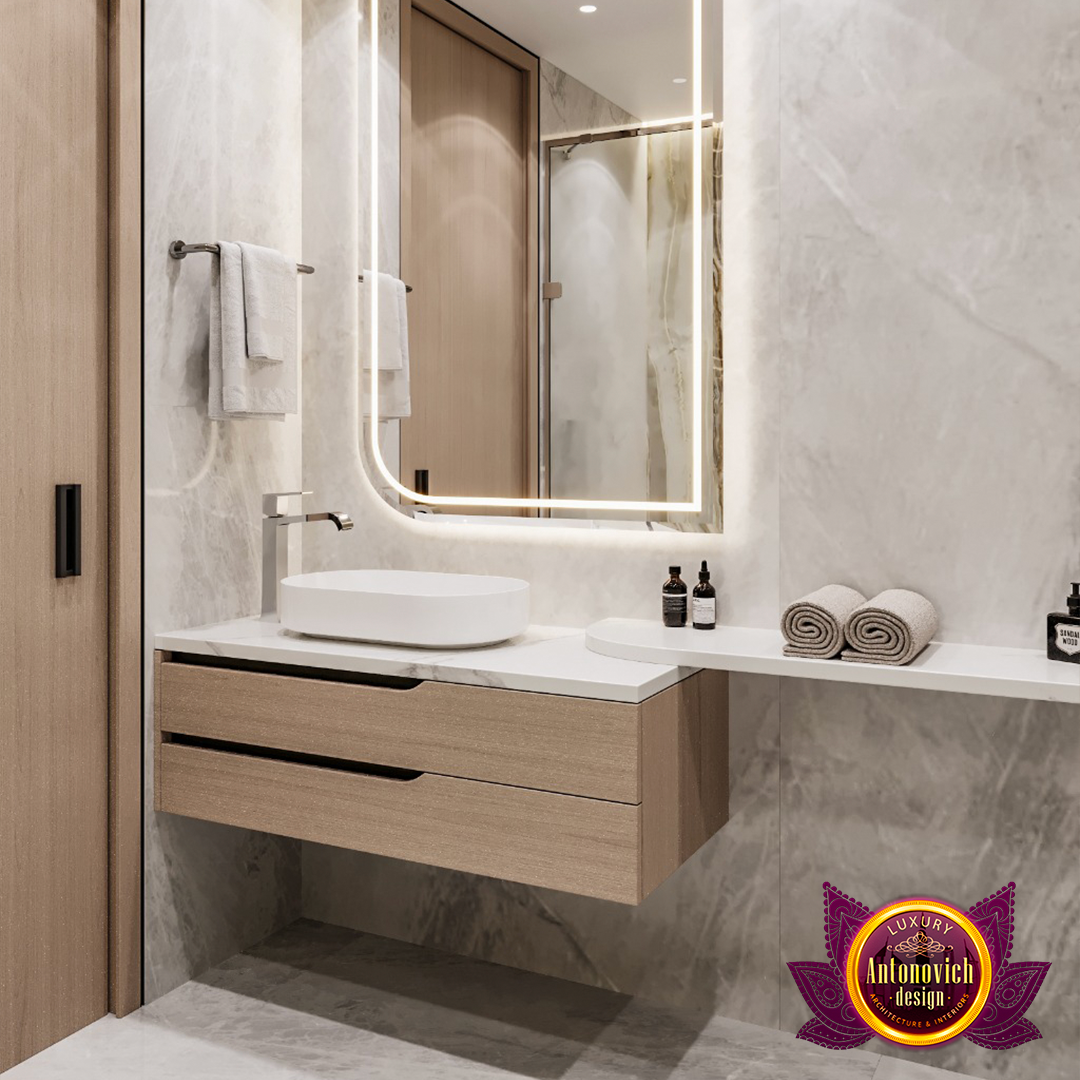 الحمّام البني العصري هو المكان المثالي للاسترخاء بعد يوم طويل. الدرجات الغنية من البني، الأبيض النقي، والنغمات المحايدة الجريئة خيارات مثالية لديكور الحمّام في هذا التصميم المذهل في دبي التصميم الداخلي. إذا كانت بقية مساحتك المنزلية مطلية بدرجات بنية أو ألوان محايدة هادئة، فإن دخول حمّام ذو لوحة ألوان معاصرة يمنح راحة؛ ويمكن تنسيقه مع أفكار غرف نوم مريحة. ولتجربة وحدات متصلة، فكر في تصميم غرفة نوم ذكية. صممنا هذا الحمّام الفاخر في دبي كواحد من حمّاماتنا المعاصرة والمتميّزة، ومصدر إلهام ضمن اتجاهات التصميم المعاصر. استعد لأن تقع في حب حمّامك الداخلي العصري والفخم في الإمارات. المنطقة الرحبة زُيّنت ثريا مخصصة لإضافة طابع مهيب. اخترنا نمط فكرة حمّام داخلي لإنشاء حمّام ماكسيماليست.