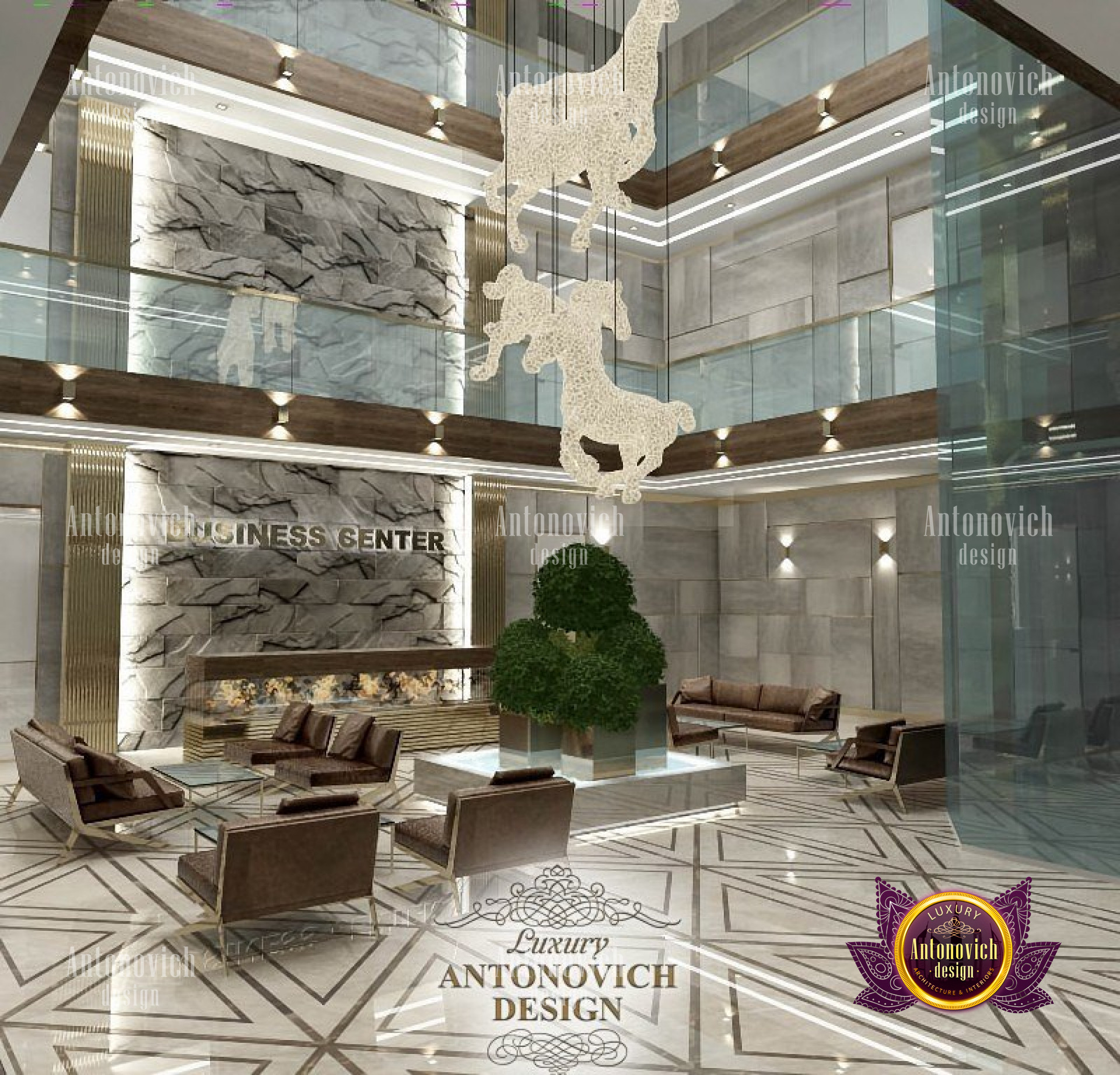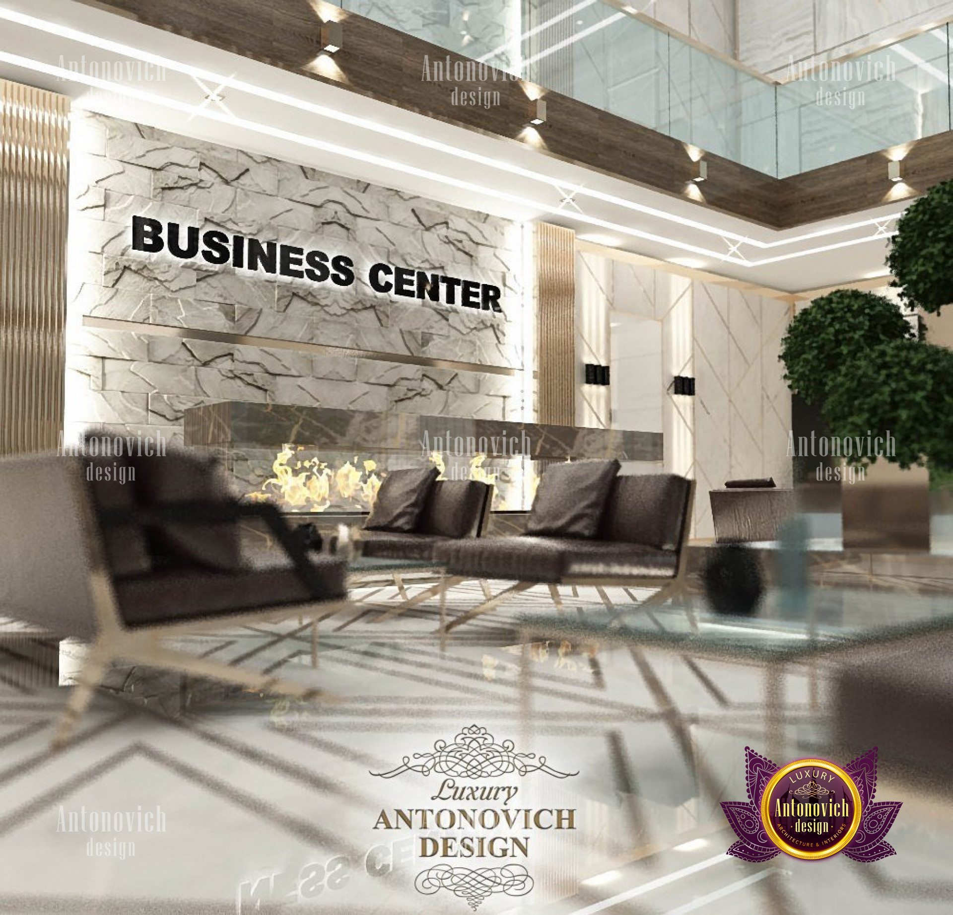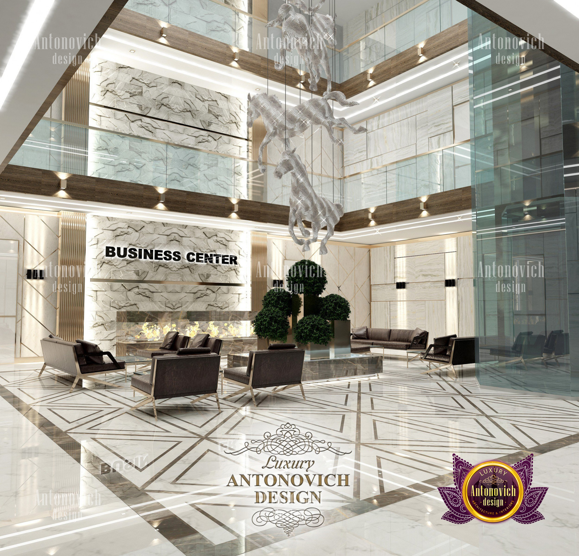 واحدة من أكثر الميزات المدهشة في المكان الرائع هي الثريا الضخمة التي صممها أفضل مصممي الديكور الداخلي في دبي. لونه فريد تمامًا وهو يكمل تمامًا تصميم مركز الأعمال الفاخر هذا. أثناء العمل في مركز الأعمال التجارية ، يكون مركز الأعمال التجاري واسعًا بما يكفي للاسترخاء فيه. من جهة داخلية تجارية ، وعلى الجانب الآخر توجد أريكة مع طاولة أنيقة. يتم تضمين كل ما تحتاجه لإنشاء مكان مذهل ستفتخر بالتباهي به كل يوم في أفخم تصميم داخلي لمركز الأعمال التجاري. لها خصائص مميزة. تم تزيين الجدران والأرضيات بطريقة تجعلها جميلة ومتطورة. الزخارف جميلة وكروية وتتناسب تمامًا مع السقف الدائري. على الجانب الآخر من الغرفة ، يمكنك رؤية وحدة رفوف رائعة مع خزانة. مع لاكشري أنطونوفيتش ديزاين وشركات التصميم الداخلي الدولية في الإمارات العربية المتحدة ، فإن إنشاء تصميم داخلي لمركز أعمال مريح هو قطعة من الكعكة. سيعمل موظفوهم المحترفون معك لإنشاء تصميم داخلي مثالي في دبي. هناك العديد من الأساليب المختلفة للاختيار من بينها ، بما في ذلك هذا النمط! أنتج أنتونوفيتش ديزاين الفاخر وأفضل مصممي الديكور الداخلي في دبي هذا المركز التجاري المذهل باستخدام أجود المواد والمفروشات المتوفرة في الإمارات العربية المتحدة.