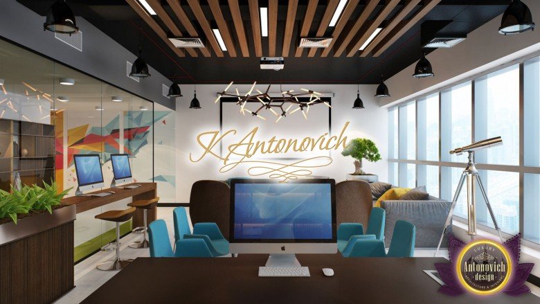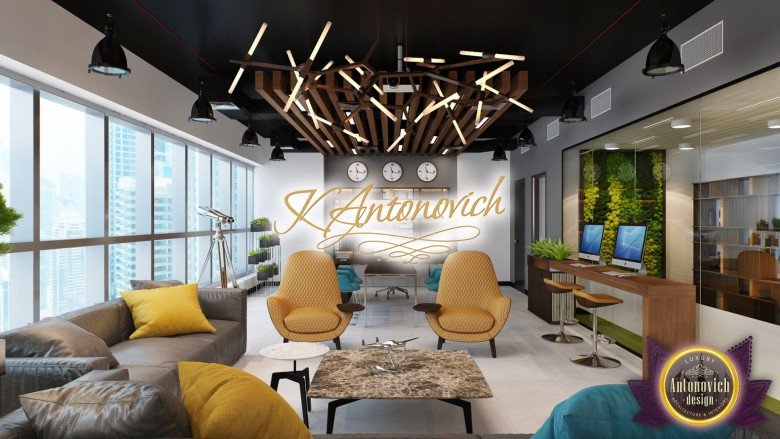 تصميم داخلي حديث وفخم للمكتب مليء بالألوان من المرح والأناقة. تتميز بألوان يمكن أن تضفي لمسة مشرقة على التصميم الداخلي. تضفي الألوان الداخلية الجميلة حيوية على التصميم الداخلي الفاخر للمكتب. إنه مثال لمكتب جميل ومثالي لأي موظف. يجب أن تكون المكاتب خالية من المساحات ويجب ألا يتم إنشاؤها بشكل عشوائي. هذا التصميم الداخلي الحديث الفاخر للمكتب الذي صممته شركة لاكجري انتونوفيتش ديزاين ذات الشهرة العالمية نابض بالحياة من جميع النواحي. يتميز الديكور الداخلي الفاخر باللون الأصفر والأزرق من بين ألوان أخرى مما يخلق إحساسًا رائعًا بالتصميم الداخلي الحديث للمكتب الفاخر.