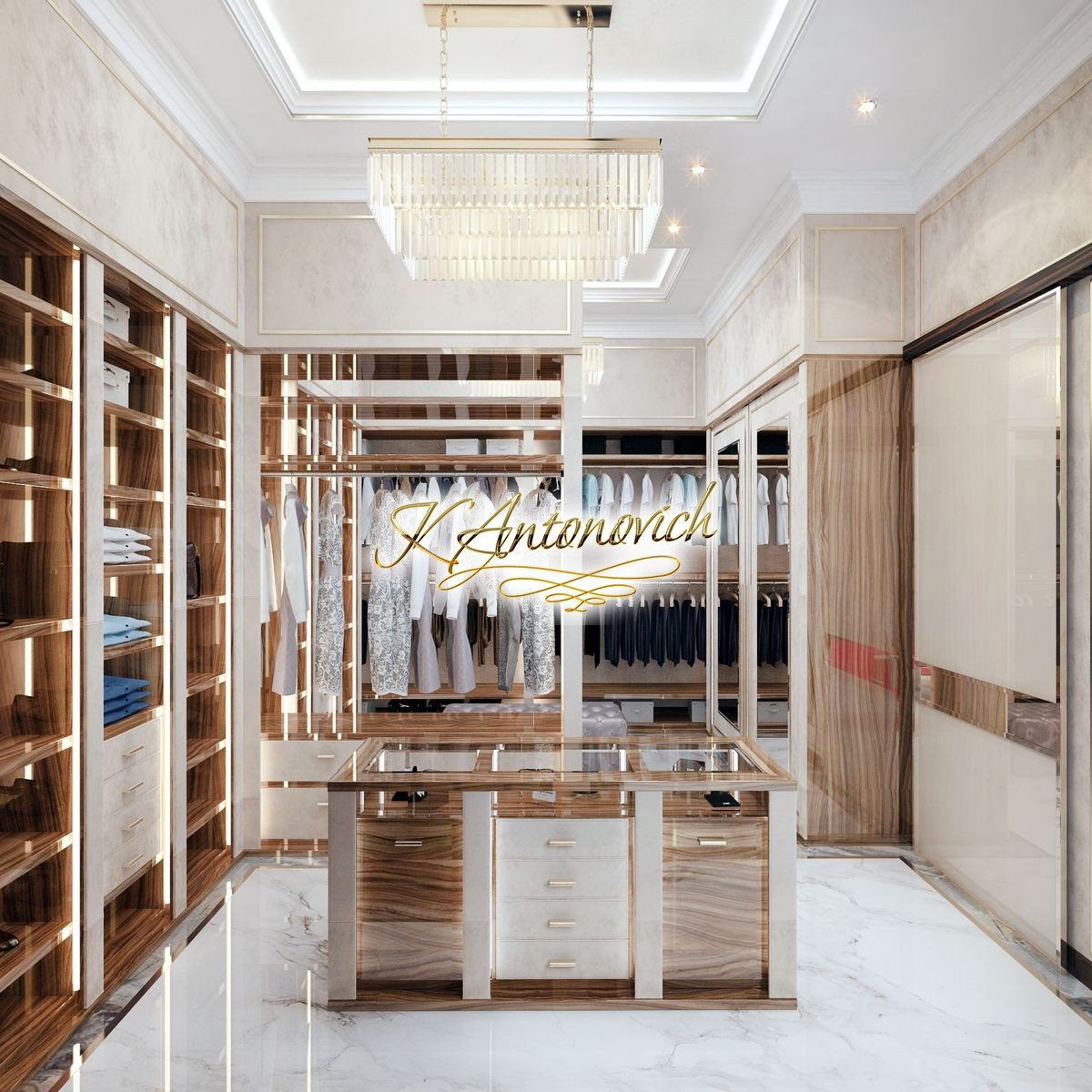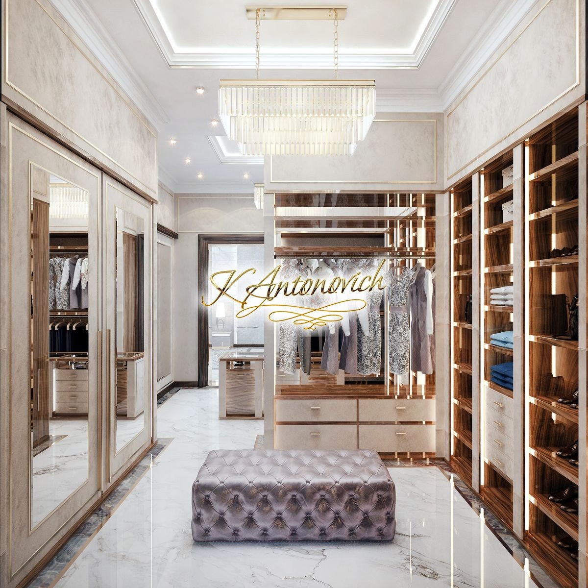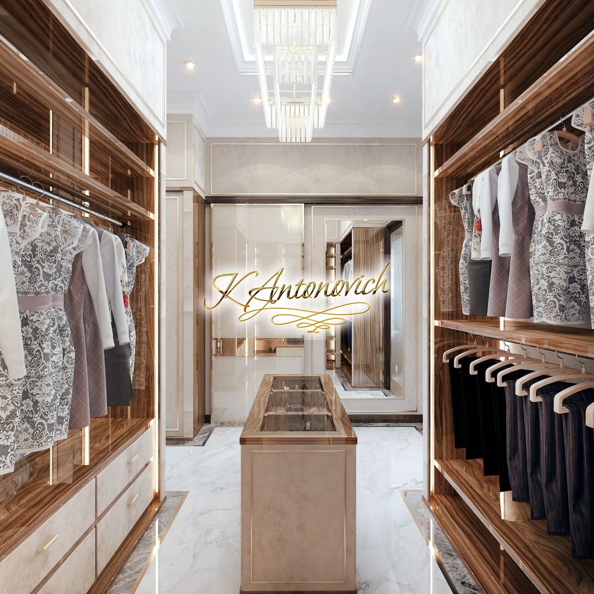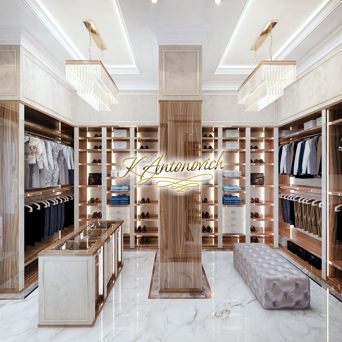 تصميم داخلي فاخر لغرفة الملابس والخزانة