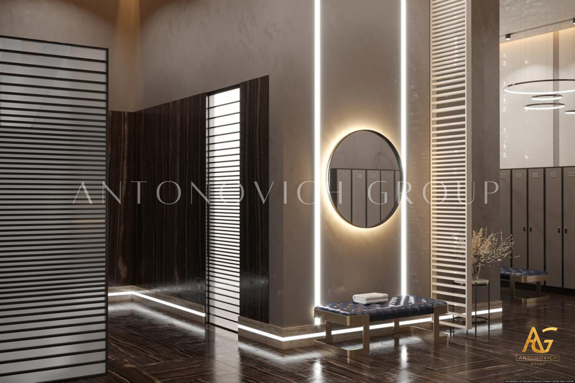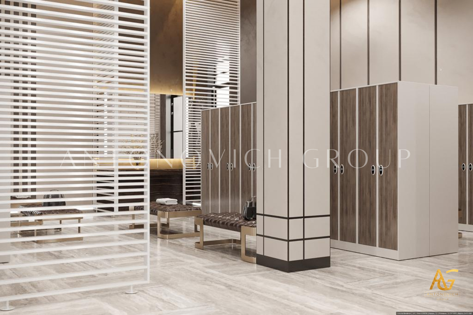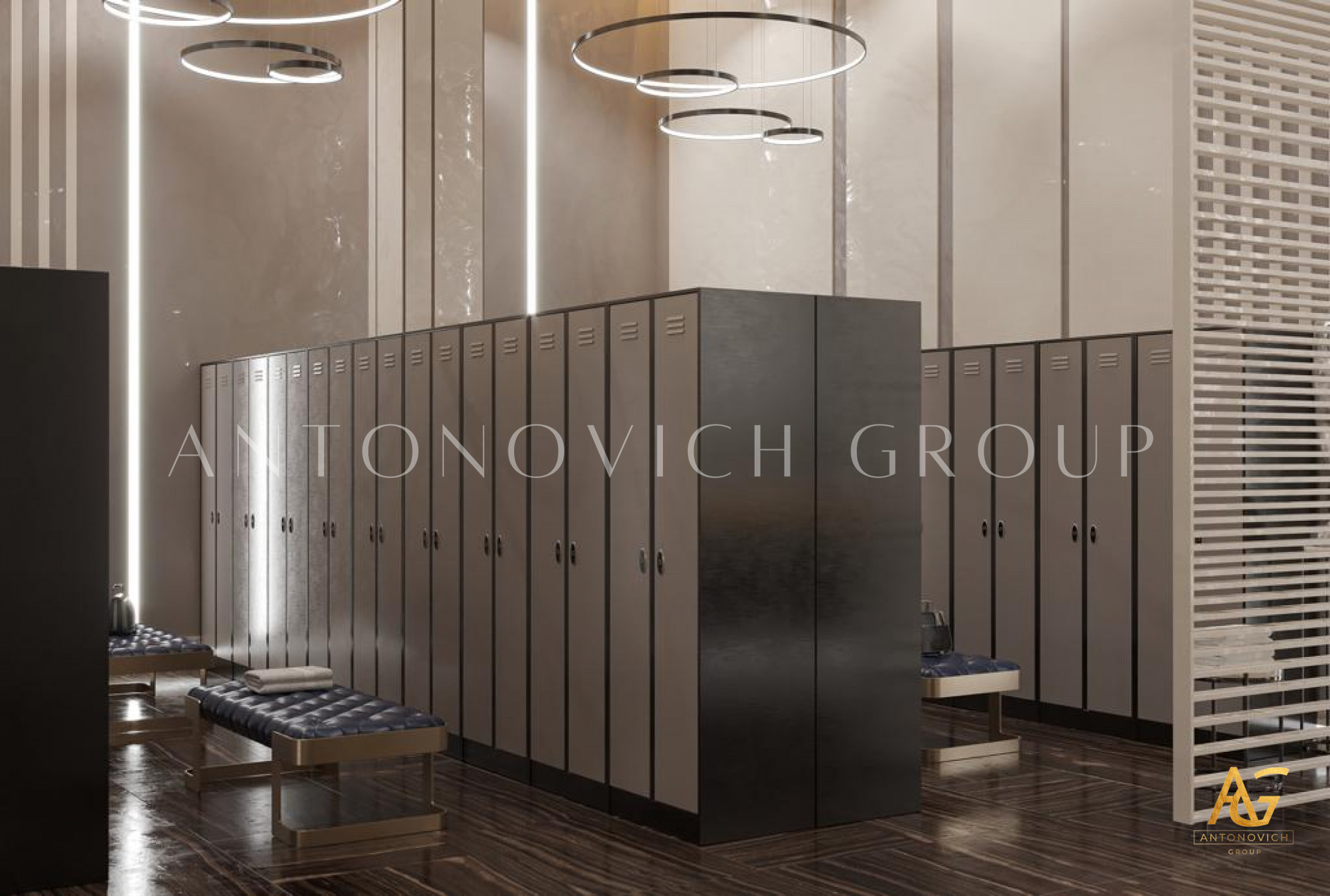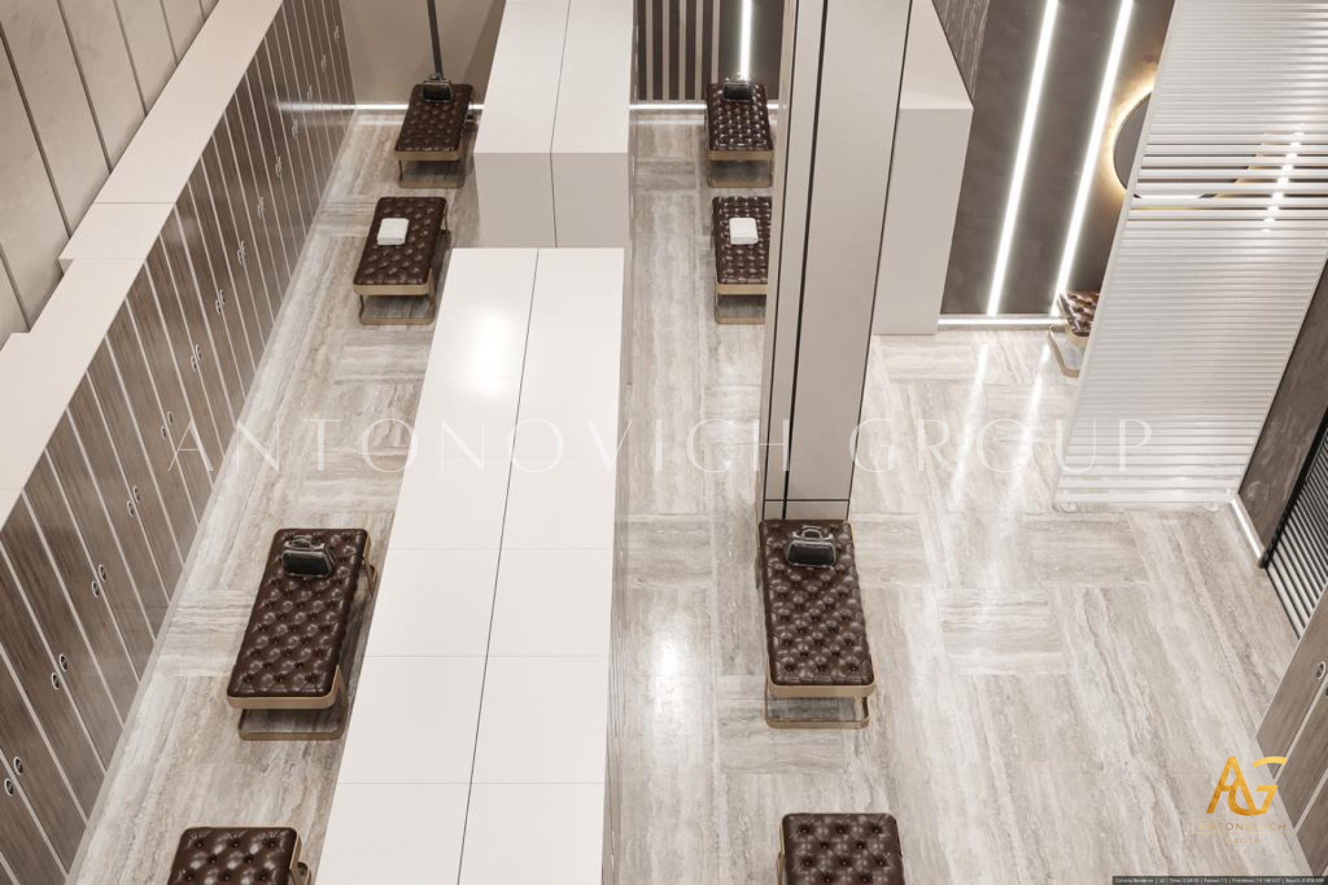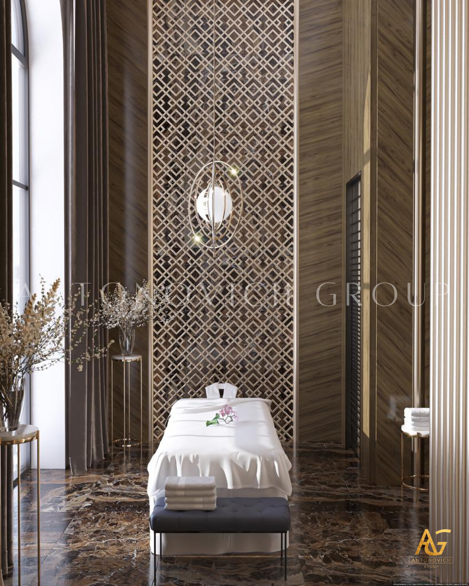 إن غرفة تبديل الملابس في التصميم الداخليفي الامارات هي واحدة من أكثر الأماكن استخدامًا في السبا. لذا يجب أن يكون المنتجع الصحي ، مثل هذا الديكور الداخلي الفاخر في دبي ، الذي أنشأته شركة شركة تجهيز السبا المشهورة عالميًا لاكشري انتونوفيتش ديزاين مع أفضل مصممي الديكور الداخلي في دبي فانه تصميم داخلي فسيحًا ومرتبًا. وينضح التصميم الداخلي الفاخر والمتطور في دبي بأجواء جميلة وأنيقة ويشتمل التصميم الداخلي المذهل للسبا على مجموعة متنوعة من الأنماط التي تعمل معًا لإنشاء عمل فني. فإنه مثل متحف ، ولكن مع التركيز على التصميم الداخلي الراقي. أحد الجوانب الأكثر لفتًا للانتباه في تصميم المنتجع الصحي الحديث هذا هو المزيج الرائع من اللون البني والأسود والإضاءة الصحيحة. حيث يعد مفهوم اللون الأسود من خلال الجدران والديكورات أحد مجالات التركيز الأساسية لتصميم السبا الحالي. تجمع لاكشري أنطونوفيتش ديزاين ، مع أفضل مصممي الديكور الداخلي في دبي ، بين المواد الفاخرة التي تم تشطيبها بتفاصيل مصنوعة خصيصًا لتعزيز تعقيد وأناقة هذا التصميم الداخلي الحديث.